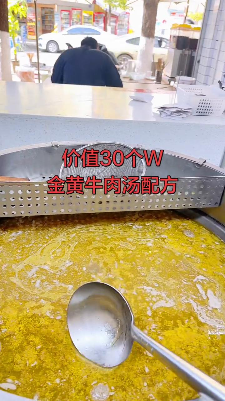 价值30个W金黄牛肉汤配方。 价值30万金黄牛肉汤你们知道怎么煲吗?大家看看这牛肉汤漂不漂亮?就这一锅汤带火了一家牛肉粉店,如果你们要学的打在公屏上我要学,我把配方步骤全部教给你们,我敢说是全网最漂亮的牛肉汤。 很多人说金黄的牛肉汤是加了鸡油,那是一些无知的小白半桶水不懂的,金黄牛肉汤是不需要加精油的。