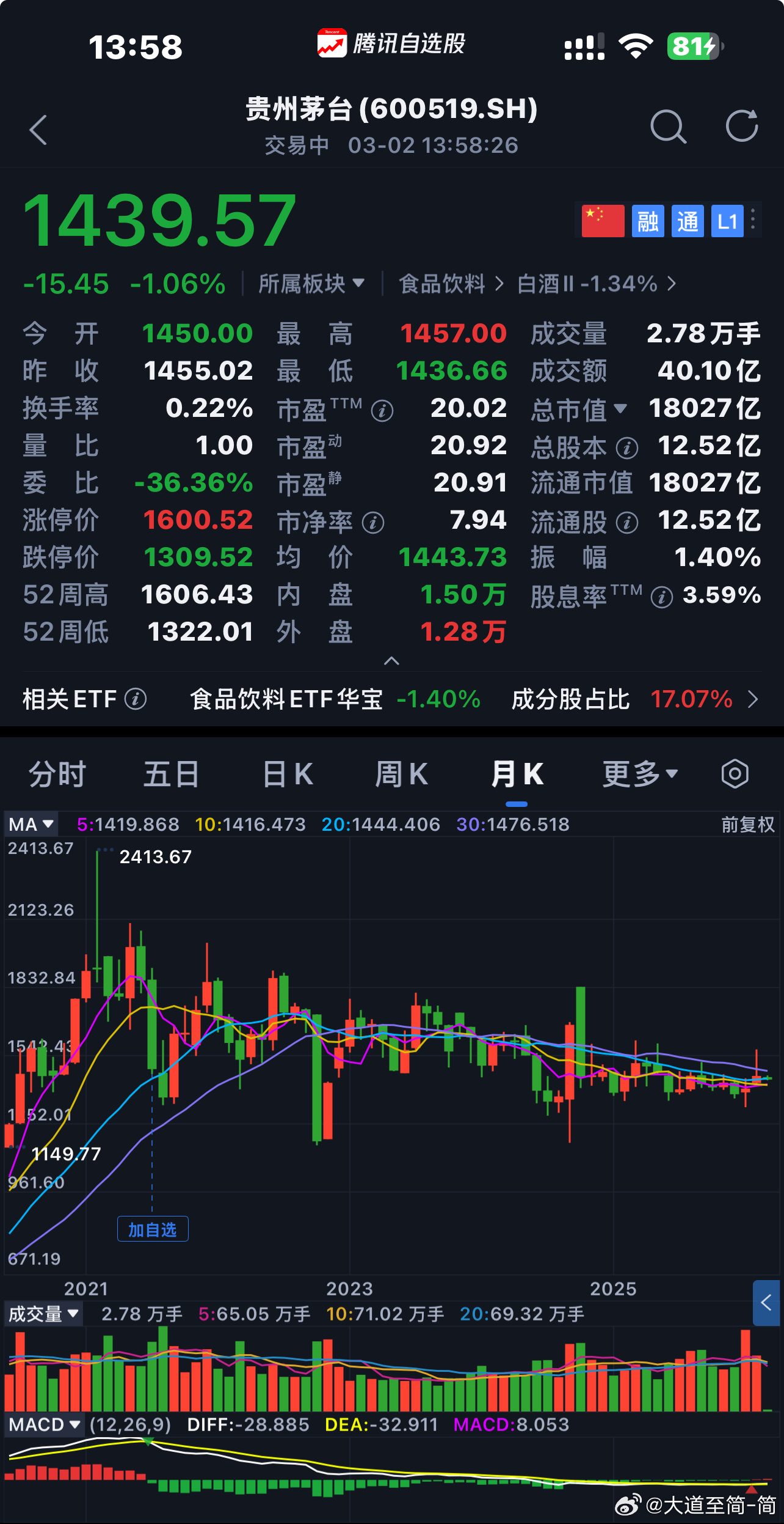 大道: 就算价格掉下来也是会回去的,万一这一幕又重演,请翻到这一页,然后多买点53度飞天和股票,就像上次一样。