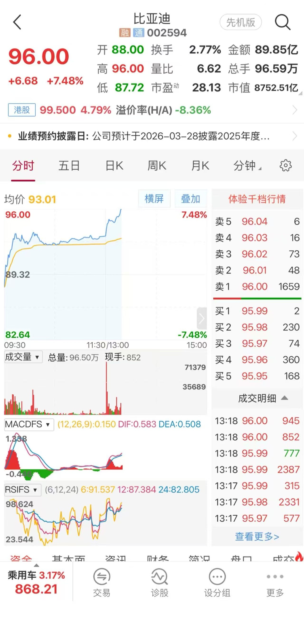 比亚迪股票大涨7%3月2日,比亚迪对外表示,公司即将于2026年3月5日召开颠覆性技术发布会。此外,今日比亚迪股票大涨超7%。 新年开工开了好头。3月5号比亚迪发布颠覆性技术