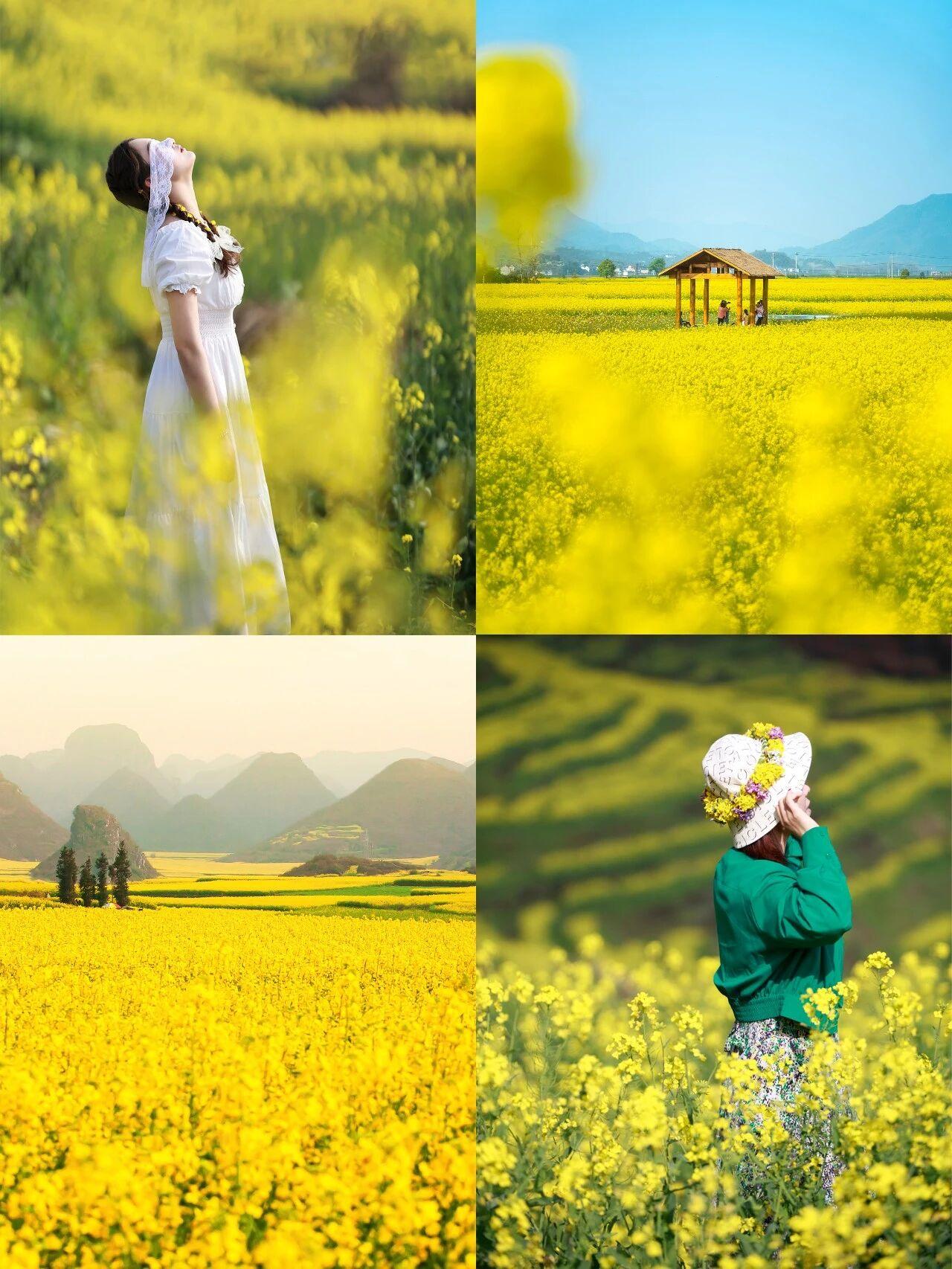 📣错过再等一年! 💛80万亩磅礴花海,从脚下一直铺到天边,汹涌的金色花海,像被打翻的颜料桶,浸染峰林之间,铺满河谷两岸,点亮视线能及的每一个角落 金鸡峰丛摇曳的花浪,一直涌到天边,漫过林立的青色峰林,看不到尽头;螺丝田的油菜花,在梯田里,一圈一圈顺着山势往上盘,宛如大地的指纹 迎着早春的盈盈春风 带着轻快的脚步走进春日暖阳中 去看第一场春日花海 蛱蝶飞舞,田埂湿润,春山青碧 盛花期只有20多天,现在去,正当时! 📸滇东南美景大赏: ✔罗平油菜花:被吉尼斯评为世界最大天成花海,早春2月就开始盛开,是整个中国独一无二的壮阔花海 ✔元阳梯田:1300年历史,被列入世界遗产名录,每年11-4月拥有灌水期独一无二的光影奇景 ✔开远米轨:中国西南地区的第一条铁路,充满历史意义,至今仍在使用 ✔建水古城:距今1200多年的历史,始建于唐代,比“丽江”更古朴,处处是人间烟火的惬意 ✔蒙自碧色寨:是电影《芳华》的取景地,中国最早的火车站之一,滇越铁路上唯一的特等站 ✔蚁工坊:彩色砖块建成的云南摩洛哥,彩色的多巴胺王国 ✔弥勒东风韵:红砖火苗状建筑群,浓烈的艺术氛围和异域风的独特观光小镇 ✔抚仙湖:是中国最深的高原淡水湖泊,被古人称为“琉璃万顷”
