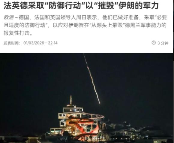 英法德三国下场了!怪不得这三国不谴责美国和以色列! 3月2日,根据法新社报道,德国、法国和英国领导人周日表示,他们已做好准备,采取“必要且适度的防御行动”,以应对伊朗旨在从源头上摧毁德黑兰军事能力的报复性打击。这三国警告伊朗,我们将采取措施捍卫我们自身以及我们在该地区盟友的利益。 对于英法德三国的表态,我们怎么看呢? 说实话,这三国决定这样做,这主要有三方面的考虑。其一,英法德三国在伊朗问题上,跟美国长期立场一致。 如果不下场,这三国既怕得罪美国,也怕自己被边缘化。因此,找了一个理由加入战局。 其二,伊朗的报复行为确实外溢到了多个国家,在英法德看来,伊朗反应“过度”。 毕竟自2月28日美以对伊朗发动联合空袭后,伊朗的报复行动范围不断扩大,不仅打击了以色列和美军基地,还波及了阿联酋、科威特等多个中东国家,甚至英法德在中东的军事据点也受到了威胁,英国在巴林的军事基地曾遭导弹近距离袭击,落点距英军仅200米,法国在阿联酋的海军基地也被波及,这让三国感到了直接的安全压力。 其三是,英法德最核心的顾虑,还是自身的能源安全和经济利益。大家都知道,欧洲的经济命脉一直和中东能源深度绑定,而霍尔木兹海峡承担着全球约19%的原油运输,伊朗已经宣布关闭这条关键海峡,这对刚从俄乌冲突能源危机中缓过来的欧洲来说,无疑是致命打击。 目前冲突已经导致油价单日跳涨超10%,超过150艘油轮被迫观望,一旦海峡长期关闭,油价还会持续飙升,德国的制造业、法国的民生用电都会受到严重冲击,英国也难逃电价、物价上涨的连锁反应。 说白了,英法德表态强硬,本质上是在向伊朗施压,逼伊朗重新开放海峡,避免自己的经济因为能源断供而崩溃。 毕竟美国远在万里之外,还实现了能源独立,而欧洲就在中东“家门口”,能源命脉极其脆弱,一旦局势失控,最先被高通胀和能源危机吞噬的,就是伦敦、巴黎和柏林。 可能有朋友会问,英法德明明没有参与美以最初的空袭,为什么还要主动站队,甚至放出“从源头摧毁伊朗军事能力”的狠话?其实这里面还有一层微妙的平衡术。 三国在声明中特意强调,自己没有参与对伊朗的初始打击,也不会加入进攻性行动,英国首相斯塔默还明确表示,英国只是允许美国使用其军事基地,派出战机执行拦截任务,而非主动打击伊朗本土。 这就很明显了,英法德不想被彻底拖入全面战争,毕竟一旦直接参战,他们的本土很可能面临伊朗支持的反击,损失会更大。 但同时,作为北约核心成员,他们又不敢得罪美国,更不敢脱离西方阵营,否则会被美国指责“拖后腿”,影响跨大西洋合作,甚至失去在全球格局中的话语权。 所以说到底,英法德的这份表态,看似强硬,实则是一场“利己优先”的利益算计。他们既想通过谴责伊朗、配合美国,保住自己在西方阵营中的地位,避免被边缘化;又想通过“防御行动”的表态,向伊朗传递警告,保住自己在中东的军事存在和侨民安全;更想通过施压伊朗,保住自己的能源供应和经济稳定,不让欧洲再次陷入能源危机的泥潭。 他们从来不是在维护什么“地区和平”,也不是真心想帮美国和以色列,只是在各种利益博弈中,选择了最有利于自己的立场。 其实从当前局势来看,英法德大概率也只是“放狠话”,不会真的直接对伊朗本土发动打击。 他们的核心诉求是让伊朗停止报复、重新开放霍尔木兹海峡,重回谈判桌,而不是彻底激化矛盾。 毕竟欧洲已经承受不起一场新的大规模冲突,无论是能源、经济还是民生,都禁不起再一次的冲击。 但不得不说,英法德这种“一边倒”的表态,只会让中东局势更加复杂,原本就紧张的局势,很可能因为这三国的介入,陷入更难收拾的境地。 说到底,国际时事的核心从来都是利益,英法德的选择,不过是这场中东博弈中,最现实也最无奈的选择。 他们看似是“下场”支持美国,实则是在为自己的利益铺路,至于伊朗的合理自卫权利,至于中东地区的和平稳定,在他们的利益算计面前,似乎都要往后靠。 信息来源:法新社2026年3月2日报道、