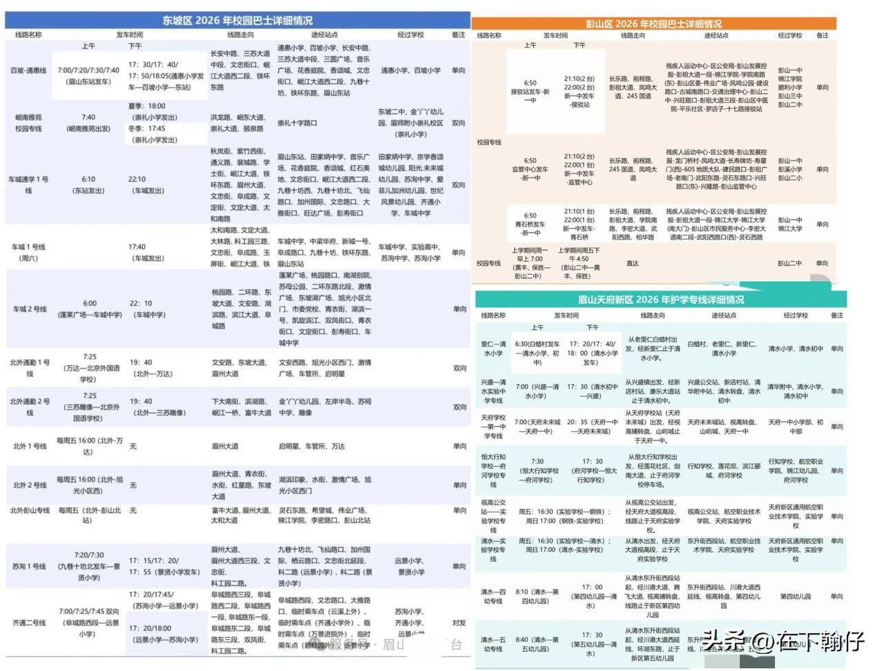 根据眉山公交发布的官方信息,24条“校园巴士”专线已于今日(3月2日)全面恢复运营,覆盖东坡区、彭山区、眉山天府新区。对于你可能关心的出行问题情况整理如下: · ⏱️ 效率提升:专线采用直达模式,有市民亲测比原先转车节省了近10分钟。 · 🔄 动态调整:公交公司明确会根据各校上下学情况动态优化运营时间。有市民反映高中晚自习赶不上末班车,这种建议积极向学校或公交公司反馈。 · 📱 实时查询:可通过“眉山公交平台”微信公众号查实时到站信息,或拨打服务热线 028-38224456 咨询。