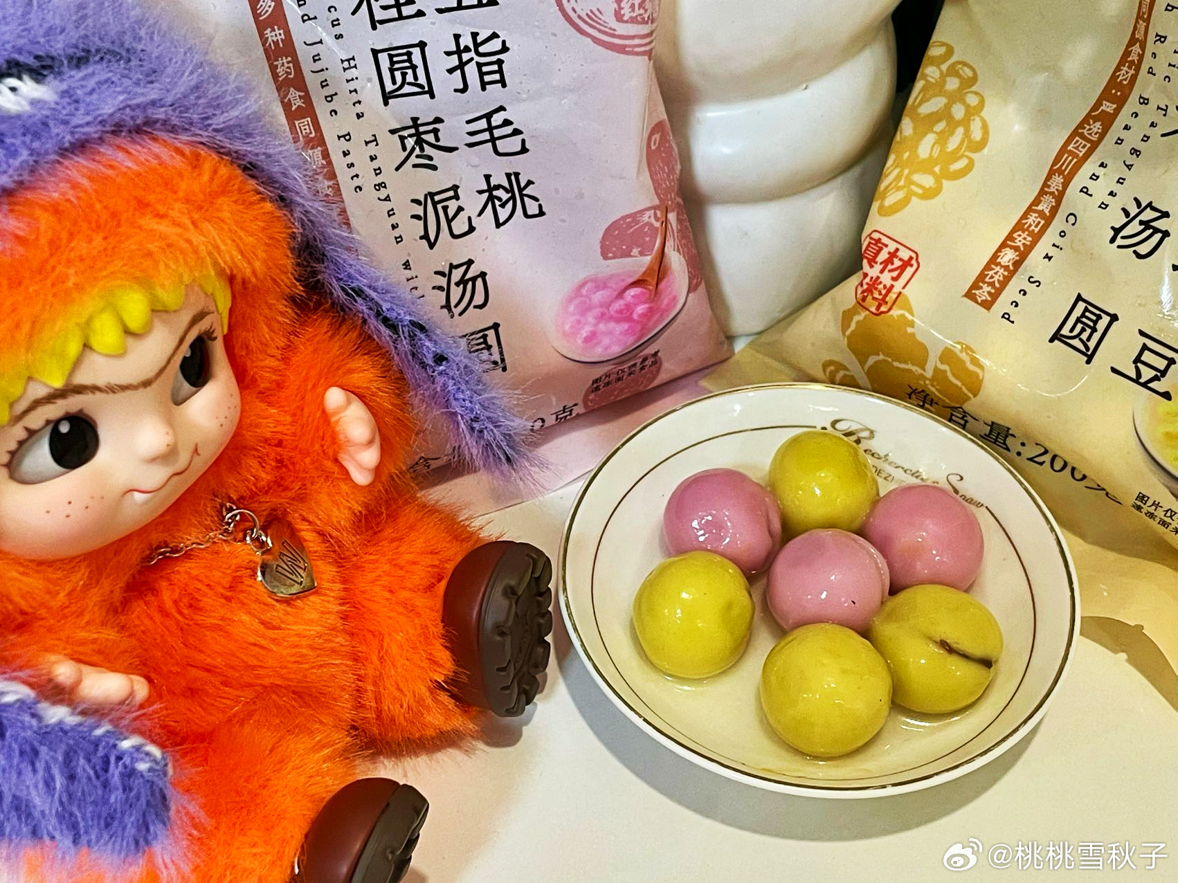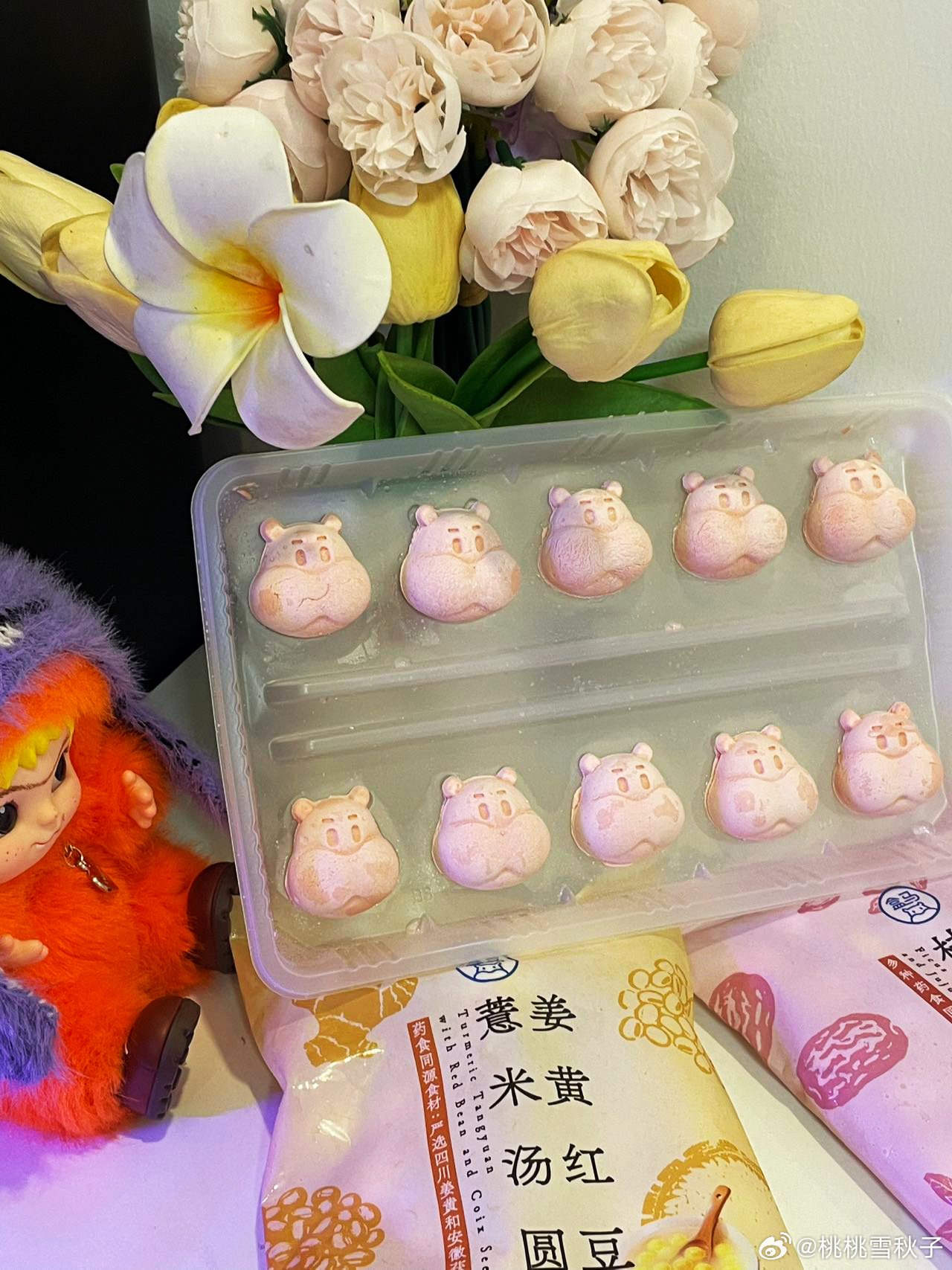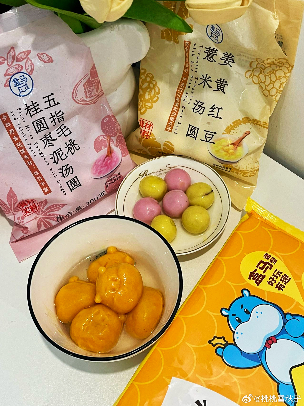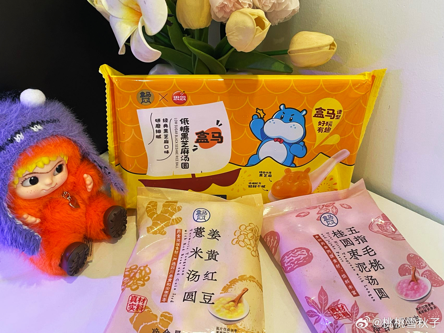这姜黄红豆薏米汤圆,外皮是元气的鹅黄色,有种来财来财的满足感🥹!一个五指毛桃桂圆枣泥,粉粉嫩嫩,有种春天万物复苏,桃桃朵朵的感觉,我不管我颜控我拿下💓!另外最出乎意料的低糖黑芝麻,这盒马的小样子,怕不是要成为吉祥物了😎✨