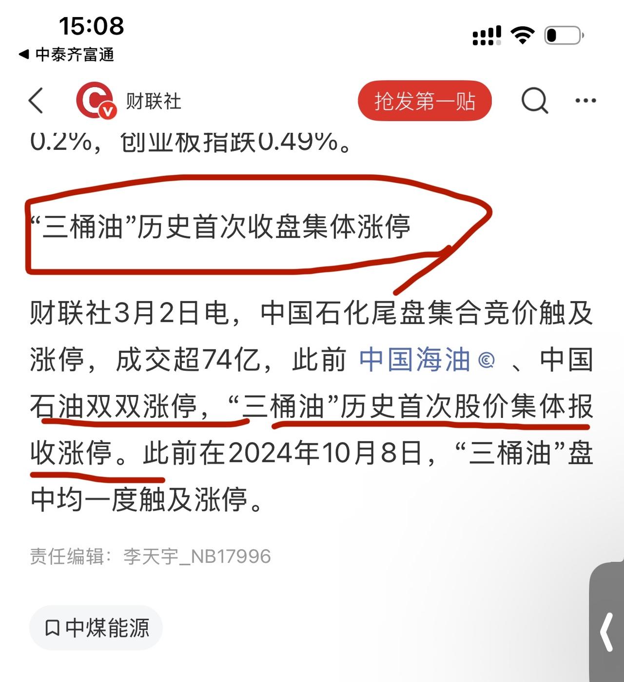 全线起飞,原油系集体飙升!原油系全线起飞,无论是股票,还是期货一系列原油衍生品,全线大涨。随便拉出来一个都比黄金强,虽然黄金我们也看涨;但收益率,原油系吊打黄金。 沪金保证金高,原油系保证金普遍很低!包括千年烂股,三桶油都一起涨停了;特朗普送钱,得接住,这种机会不多,估计有生之年也没有几次。原油 三桶油集体涨停