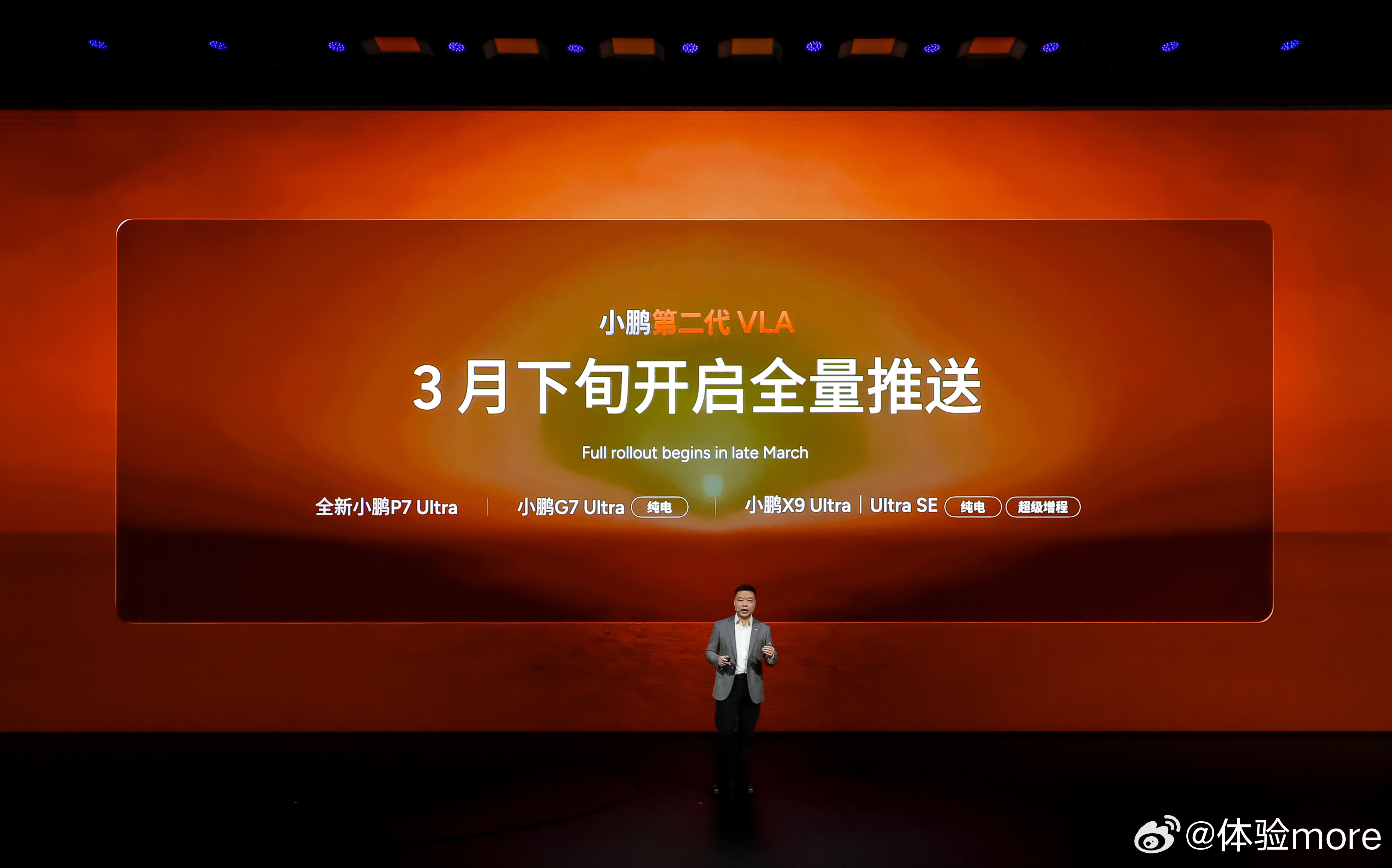 小鹏第二代VLA推送节奏:3月下旬开启全量推送,首批覆盖全新小鹏P7 Ultra、G7 Ultra纯电、X9 Ultra和Ultra SE纯电、超级增程。