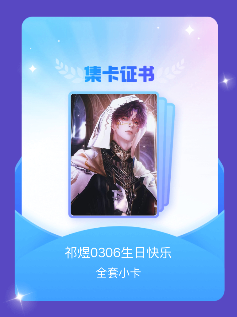 祁煜 我成功集齐了"祁煜0306生日快乐"的全套小卡!快来看看我的卡册吧~点击网