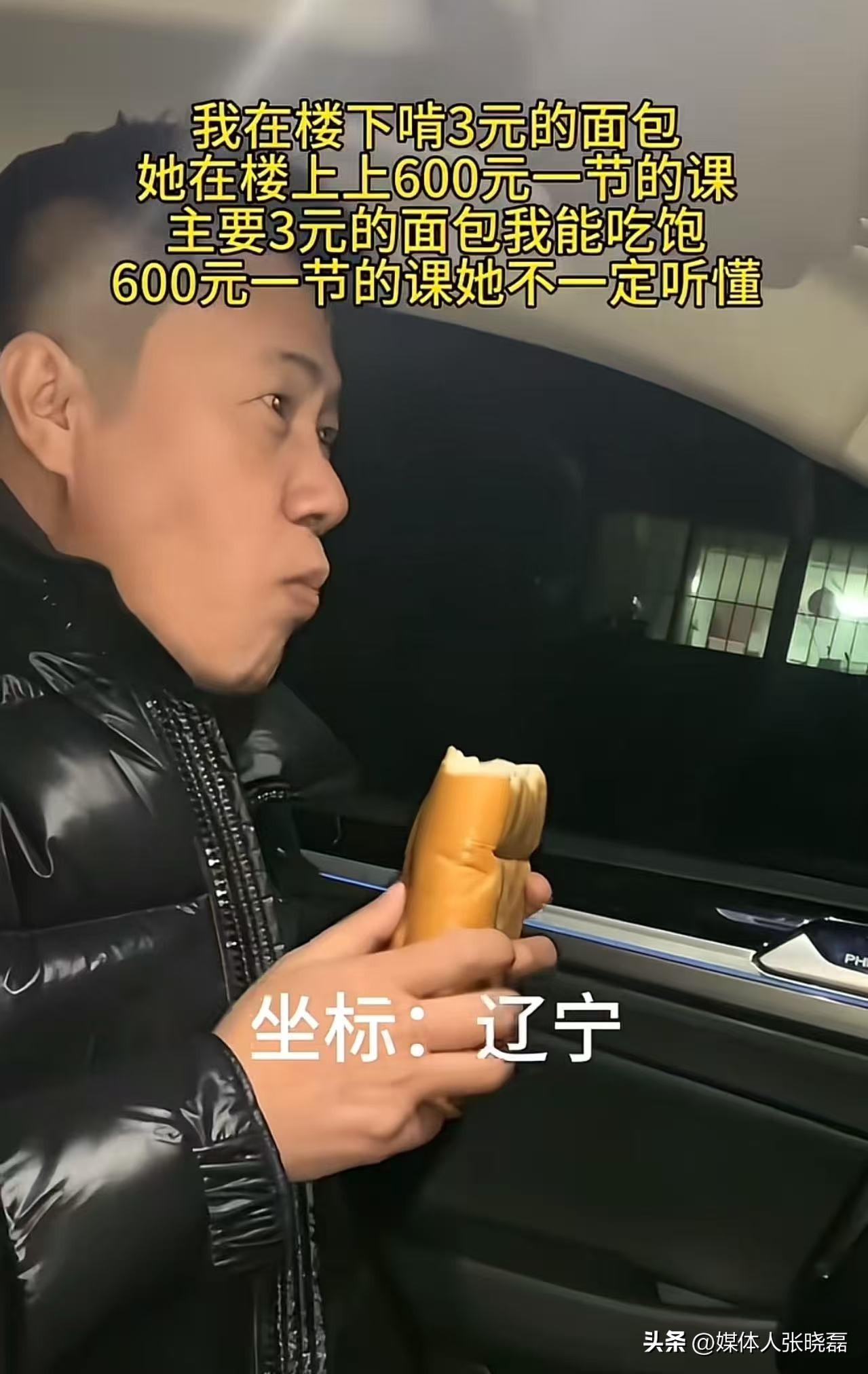 太扎心了!一个男子发视频说:“我在楼下啃3元的面包,她在楼上上600元一节的课,主要3元的面包我能吃饱,600元一节的课她不一定听懂!” 男子坐在车里,手里攥着一个刚从便利店买的打折面包,大口嚼着,时不时喝一口自带的凉白开,眼神空洞地望着前方那栋灯火通明的住宅楼。 没人知道他这一刻心里在想什么。 或许他想起了自己为了省这几百块的家教费,中午从来只吃几块钱的泡面,连加根肠都舍不得;或许他想起了妻子为了凑齐补习班的费用,精打细算到好几年不敢买一件新衣服,护肤品用的都是最便宜的袋装货。 又或许他只是突然觉得特别荒谬,全家勒紧裤腰带过日子,把能省的钱都省下来,把最好的资源全都堆给孩子,可到头来呢,钱花了,罪受了,孩子却未必能把这 600 元一节课的知识听进去,这份沉甸甸的付出,连个响都听不到。 现在的普通家庭,在孩子教育上的花费,早就成了压在头上的一大块重担,有数据显示,咱们国家城市家庭的教育支出,平均占到家庭总收入的三成还要多,有的工薪家庭甚至超过一半,也就是说,夫妻俩挣的钱,一大半都花在了孩子的补课、报班上。 为了这些钱,家长们只能拼命省自己,视频里的男子啃 3 元面包,不是他爱吃,是能省一块是一块,省下的每一分钱,都想砸在孩子的课上,他不是舍不得对自己好,是舍不得把给孩子补课的钱,花在自己的吃喝上。 一线城市的家庭压力更大,年均教育支出能占到可支配收入的三成五,普通工薪族挣的那点辛苦钱,大半都填进了补课的窟窿里,自己的日子只能一省再省。 这样的事,在咱们身边随处可见,根本不是个例。我认识一个楼下的张叔,夫妻俩都是工厂的普通工人,一个月加起来也就挣八千多块钱。 儿子上初中,数学、英语、物理三门都报了一对一,每节课都要五百多块,一周上三节,一个月光补课费就要六千多,剩下的钱还要管一家人的吃喝、水电、房租,日子过得紧巴巴的。 很多人觉得,补课花的钱越多,孩子成绩就越好,可真实的数据却给了大家一记耳光,有调查显示,咱们国家中小学生里,超过六成的孩子都上过补习班,可真正补完课成绩有明显提升的,连两成都不到,剩下的要么成绩没变化,要么因为压力太大,成绩反而下滑了。 还有一线老师做过统计,班里补课最多的孩子,往往上课最容易走神,因为补习班老师直接给解题模板,孩子根本不动脑子,回到学校连课本上的例题都不会独立做,这样的补课,花再多钱也是白搭。 就像视频里说的,600 元的课,孩子不一定能听懂,这不是孩子笨,是家长盲目跟风砸钱,根本没找对孩子的学习节奏,钱花了,力出了,效果却微乎其微。 家长们之所以这么执着于报高价补习班,无非就是怕孩子输在起跑线上,看着别人家孩子都在补,自己不补就心慌,觉得是对不起孩子,可大家都忘了,教育从来不是拼钱的游戏,不是课越贵、花的钱越多,孩子就越优秀。 咱们那时候养孩子,没这么多补习班,没这么多花钱的地方,孩子照样能考上好学校,照样能成才,现在条件好了,反而把自己逼得这么累,把孩子压得这么苦,实在是得不偿失。 还有七成多的家长承认,自己报班就是看别人报跟着报,根本没考虑孩子适不适合,这种盲目跟风,最后只会苦了自己,坑了孩子。 视频里的男子,啃着 3 元的面包,守着楼上 600 元的课,他的心酸,是无数普通父母的缩影。他省吃俭用,是对自己的苛刻,是把所有的爱都给了孩子,可这份爱,孩子未必能接住,600 元的课听不进去,就是最直接的答案。 他不是抱怨孩子,是突然觉得特别荒谬,全家拼尽全力,勒紧裤腰带,把所有好东西都给孩子,可到头来,却换不来想要的结果,这种无力感,只有亲身经历过的人才能懂。 他坐在车里的样子,不是懒,是累,是花了血汗钱却看不到希望的迷茫,是对自己付出不对等的心酸。 普通家庭挣钱不容易,每一分钱都是血汗钱,都是靠加班、靠省吃俭用攒下来的,别再盲目给孩子报高价补习班了,别再让父母啃着面包省吃俭用,孩子却在高价课上浪费时间。 多陪陪孩子,帮孩子找对学习方法,比砸多少钱都管用,教育的本质是用心,不是用钱,别让教育焦虑毁了自己的生活,也别让盲目投入,辜负了父母的一片苦心。 毕竟 3 元的面包能实实在在吃饱,600 元的课要是听不懂,那才是真的扎心,真的浪费,别让这份本该温暖的父爱母爱,变成压垮家庭的沉重负担。