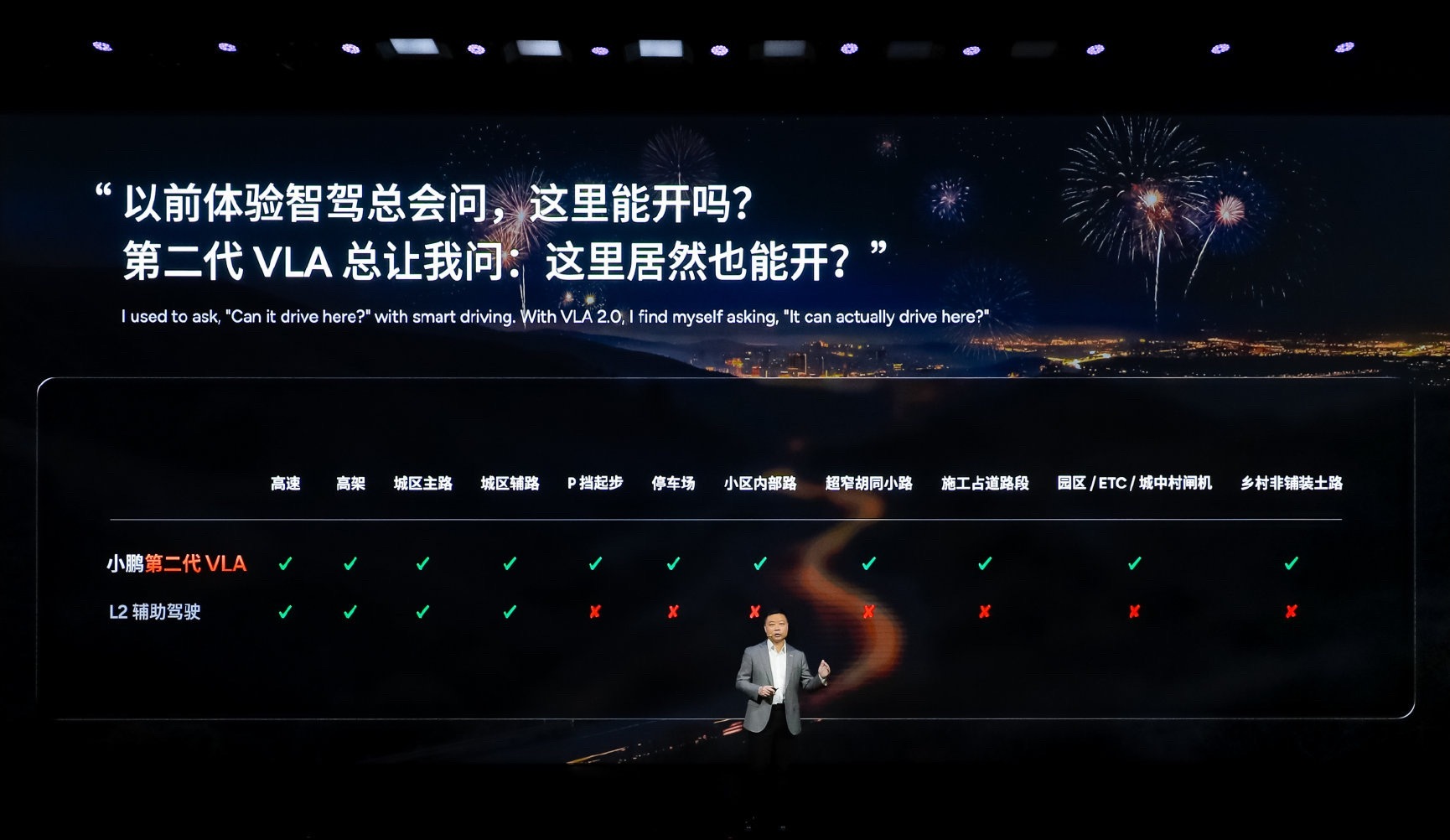 小鹏第二代VLA发布很强,我们来具体讲一下它成功挑战物理世界图灵测试,很难猜出人在开还是车在开。也能识别异形车辆、精准识别前车开门、减速带提前减速、夜间识别黑衣人、礼让小动物等等。在夜间深色物体识别率提升72%,接管次数直降七成,复杂路况也能丝滑避让!它可以P 档原地激活全程辅助驾驶,无需额外操作即可轻松启程,在高速、城区、窄路、无地图停车场全适配,真正实现全场景无死角。还可以从容应对早市人车混杂、荒野烂路、夜间锥桶封路等复杂场景。当雨天、夜市等极端路况下也能全程无接管,通行表现稳定可靠。3月11日,全国732家门店开启试驾。 小鹏智驾负责人称拉开差距的时刻到了