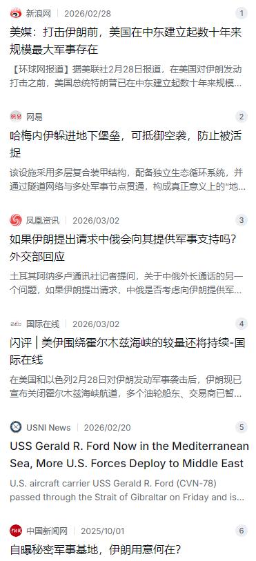 特朗普这回恐怕是彻底睡不着觉了!本以为两艘航母能把伊朗吓破胆,结果一份来自东方的“神秘大礼”直接让他傻了眼,这仗还能打吗?我看悬! 麻烦看官老爷们右上角点击一下“关注”,既方便您进行讨论和分享,又能给您带来更多优质的内容,感谢您的支持! 特朗普这回怕是真得失眠了。原本以为把两艘航母往中东一横,就能让伊朗腿软,乖乖回到谈判桌上签"城下之盟"。结果剧本压根没按他想的走,伊朗不仅没怂,反而接二连三掏出底牌,让白宫那帮幕僚彻底看傻了眼。现在的局面是,仗还没正式开打,美国自己先陷进了进退两难的泥潭里。 为了压服伊朗,特朗普这次算是下了血本。早在今年1月底,"亚伯拉罕·林肯"号航母打击群就从亚太赶到中东。紧接着2月底,"杰拉尔德·R·福特"号航母也带着驱逐舰穿过直布罗陀海峡,进驻地中海。两艘十万吨级的核动力航母,加上至少1万名士兵、数百架战斗机,还有"爱国者"和"萨德"反导系统,这阵仗是自1991年海湾战争以来,美国在中东集结的最大规模军事力量。特朗普的心思不难猜,就是想靠这种"极限施压"的老套路,逼伊朗在核谈判中让步。 可伊朗的反应让华盛顿很意外。这个国家的决策层不仅没乱,反而有条不紊地激活了经营多年的"地下长城"。据外媒披露,伊朗最高领袖哈梅内伊早已转移到纵深达500米的超级地下堡垒。这座堡垒不仅能扛美军现役最先进的钻地弹,还配有独立的生态循环系统,通过密如蛛网的隧道与各地军事节点相连。说白了,就算美国发动最猛烈的空袭,伊朗的指挥中枢依然能正常运转。 更让五角大楼头疼的,是伊朗那遍布全国的"地下导弹城"。公开资料显示,伊朗在山体深处部署了至少29座这样的秘密基地,里面藏着数千枚弹道导弹,其中半数以上是能覆盖整个中东的"流星-3"和改进型"泥石-2"。这些导弹装在轨道式发射架上,可以通过隧道网络快速机动,打完就换个地方藏起来,根本不给美军锁定摧毁的机会。再加上近年来连续亮相的"法塔赫-2"高超音速导弹,末端突防速度据说能达到15马赫,这玩意儿对美军航母战斗群的宙斯盾系统来说,绝对是噩梦般的存在。 如果说这些硬核防御手段让美国感到棘手,那来自东方大国的外交动作,则让特朗普政府意识到,这场博弈的棋盘远比想象中大。就在美以2月28日对伊朗发动袭击后,中国外交部长王毅应约与俄罗斯外长拉夫罗夫通了电话。双方明确表态,反对使用武力,反对未经联合国安理会授权就对一个主权国家动武。说白了,中俄就是在给局势降温,防止战火进一步蔓延。这种在国际道义和外交层面的支持,虽然不像武器那样直接,却给了伊朗极大的战略底气——因为它明白,自己不是在国际社会的骂声中孤军奋战。 这下压力全回到了特朗普这边。打仗最怕什么?怕陷入消耗战,怕被拖住拔不出腿。美国在中东折腾了二十多年,阿富汗和伊拉克的教训还血淋淋的。现在真要跟伊朗开打,绝不是几轮空袭就能解决的。伊朗那套"分布式生存"的防御体系,能确保它在挨打之后还有能力反击。而反击最狠的一招,就是霍尔木兹海峡。 这个海峡有多重要?全球大约五分之一的海上石油贸易要从这里经过。伊朗革命卫队手里有上千艘高速攻击艇,平时藏在沿海的洞穴和秘密基地里,一旦开战,几分钟就能冲到海峡中间搞"狼群战术"。再加上水雷、岸基反舰导弹和自杀式无人机,伊朗完全有能力让这条世界油阀暂时"关闭"。事实上,局势紧张后,全球航运巨头马士基和MSC已经暂停了经过该区域的业务,多艘油轮遇袭的报告也让保险公司纷纷上调保费。美国本土通胀本来就高,要是油价再被推上天,老百姓的怒火可不是闹着玩的。 特朗普现在面临的,就是这样一个死局:军事上打不垮伊朗的意志,外交上堵不死伊朗的后路,经济上还要提防油价反噬。他那套屡试不爽的"极限施压",在伊朗这儿第一次碰上了硬钉子。说白了,航母再多,如果吓不倒人,也不过是海面上的活靶子。这仗还能打吗?不是能不能打的问题,而是打了之后怎么收场的问题。反正从目前的情况看,白宫那帮人恐怕是真睡不着觉了。