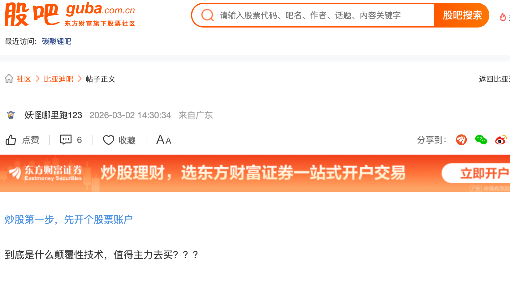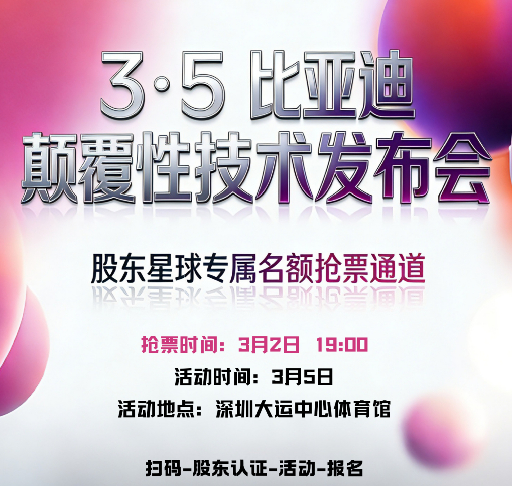 比亚迪将发布颠覆性技术好问题:到底是什么颠覆性技术,值得主力去买???让豆包全网爬了一下➕猜测,可能会有以下几个技术点:1. 推出第二代闪充刀片电池(磷酸锰铁锂),能量密度或达210Wh/kg?续航破1000km2. 第二代刀片电池冬季续航衰减低于15%,兼具高续航与低温抗衰性。3. 搭载兆瓦闪充2.0技术,单枪峰值1500kW,5分钟补能400-500km。4. 兆瓦闪充2.0适配低温环境,-10℃充电效率提升50%,枪线仅2kg更轻便。5. 发布DM6.0混动系统,亏电油耗再次降低,迈入2L时代。6. DM6.0混动纯电续航250-350km,搭配1000V高压与SiC电驱,效率超99%。7. 升级天神之眼5.0智驾,搭载端到端大模型,覆盖城市/高速NOA全场景。8. 智驾技术普惠,10万级车型标配高速NOA,15万级配激光雷达,识别率达98.7%。9. 普及全域1000V高压平台,适配超快充与高功率电机,15万级车型即可标配。10. 配套SiC电控系统,效率超99%且能耗损耗降低70%,同时下放云辇-C、闪充站等配套技术与基建。比亚迪股票大涨7%比亚迪 sz002594[股票] 3月5号比亚迪发布颠覆性技术
