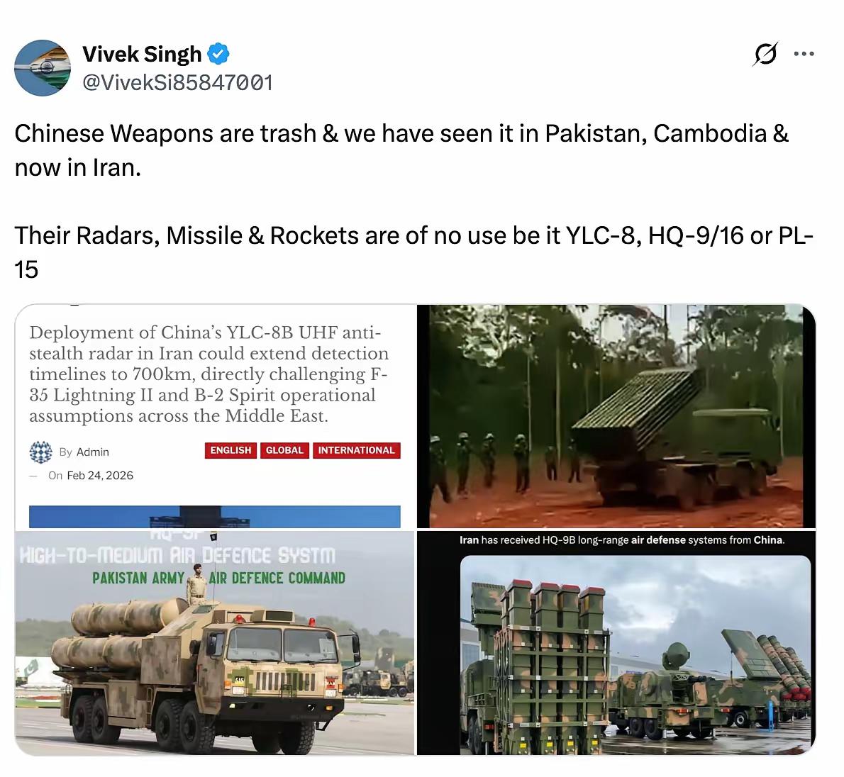 印度网红又一次破口大骂:东大武器是垃圾? 最近,这个印度网红又跳出来了,张嘴就说中国武器不行。他在网上嚷嚷,在巴基斯坦、柬埔寨,还有伊朗都见识过,说我们的雷达、导弹和火箭都没用。 这话一听,好多网友就笑了。武器不好使?关键得看谁在用啊。有网友直接怼回去:武器不是决定因素,人才是关键。再好的家伙,落到不会用的人手里,也就是根烧火棍。但要是人厉害,武器差一点,也能赢。 这道理,咱们中国人最懂了。想想当年的抗美援朝,那时候咱们的装备多差啊,可志愿军意志强,硬是把强敌打退了。这不就证明了,人才是取胜的根本吗? 现在有些网红,就喜欢语不惊人死不休。可你说破天,事实摆在那儿。中国的武器发展,大家有目共睹,不是谁骂两句就能否定的。老美那边都清楚厉害,至于其他人,随他们怎么说吧。 说到底,自家的事自家最清楚。就像家里做饭,锅碗瓢盆再高级,不会做饭也白搭。可要是手艺好,普通的工具也能做出大餐。这个理儿,放到哪儿都通。 所以,这种骂街的话,听听就算了。咱们的进步,不是靠嘴皮子,而是一步步干出来的。大家觉得呢?