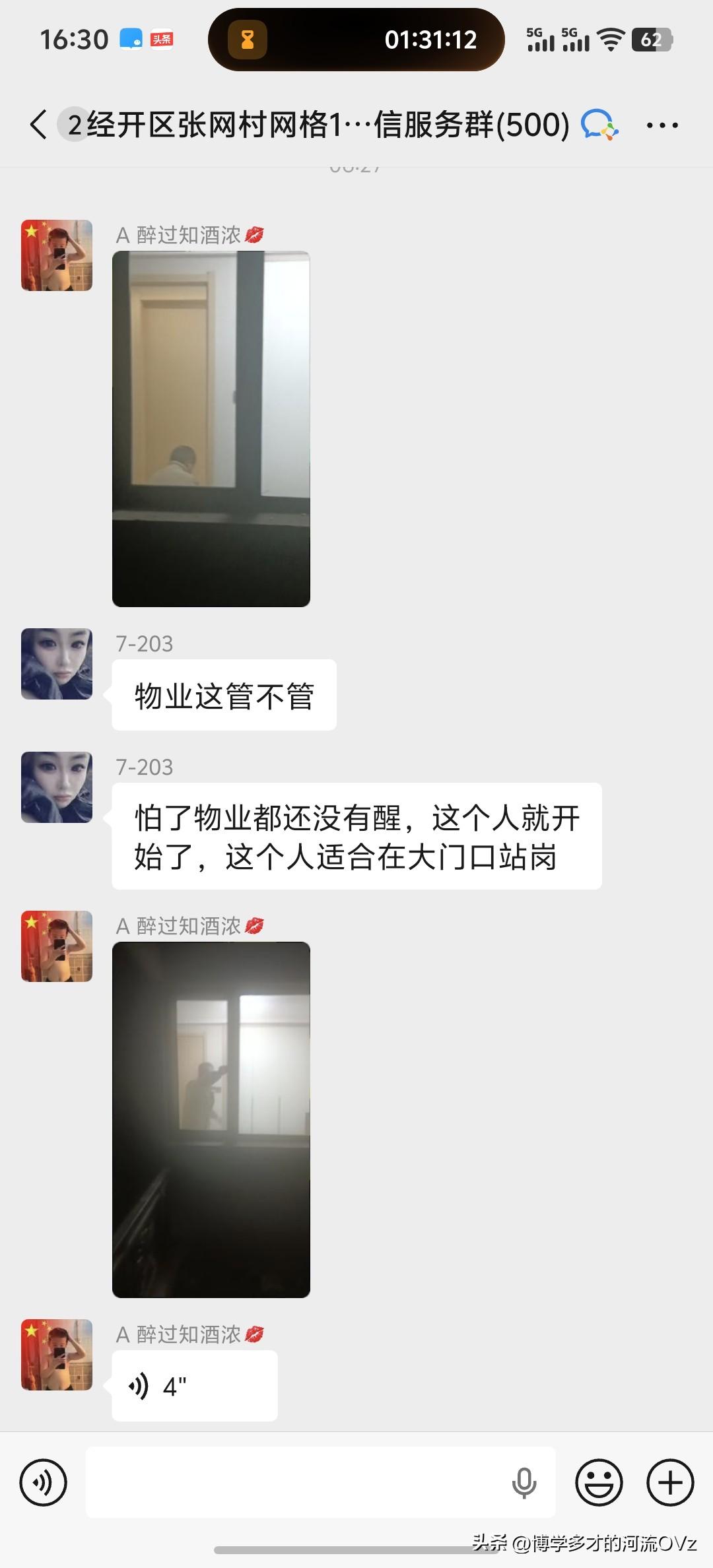今天是金碧物业走后的第122天,大明5月的第30天。 “哪里来的脑子不好的,才几点就在那敲敲敲的,大过年的这是要找骂啊!物业这管不管,”一位业主说,“怕了物业都还没有醒,这个人就开始了,这个人适合在大门口站岗。” “要物业,要物业干你mgb,tmd。”这位业主的老公直接在群里开骂,骂物业。 从上面的对话不难看出,就是有人一早就开始,乒乒乓乓发出噪音。然后没人管。估计这家的物业费肯定也不交了。
