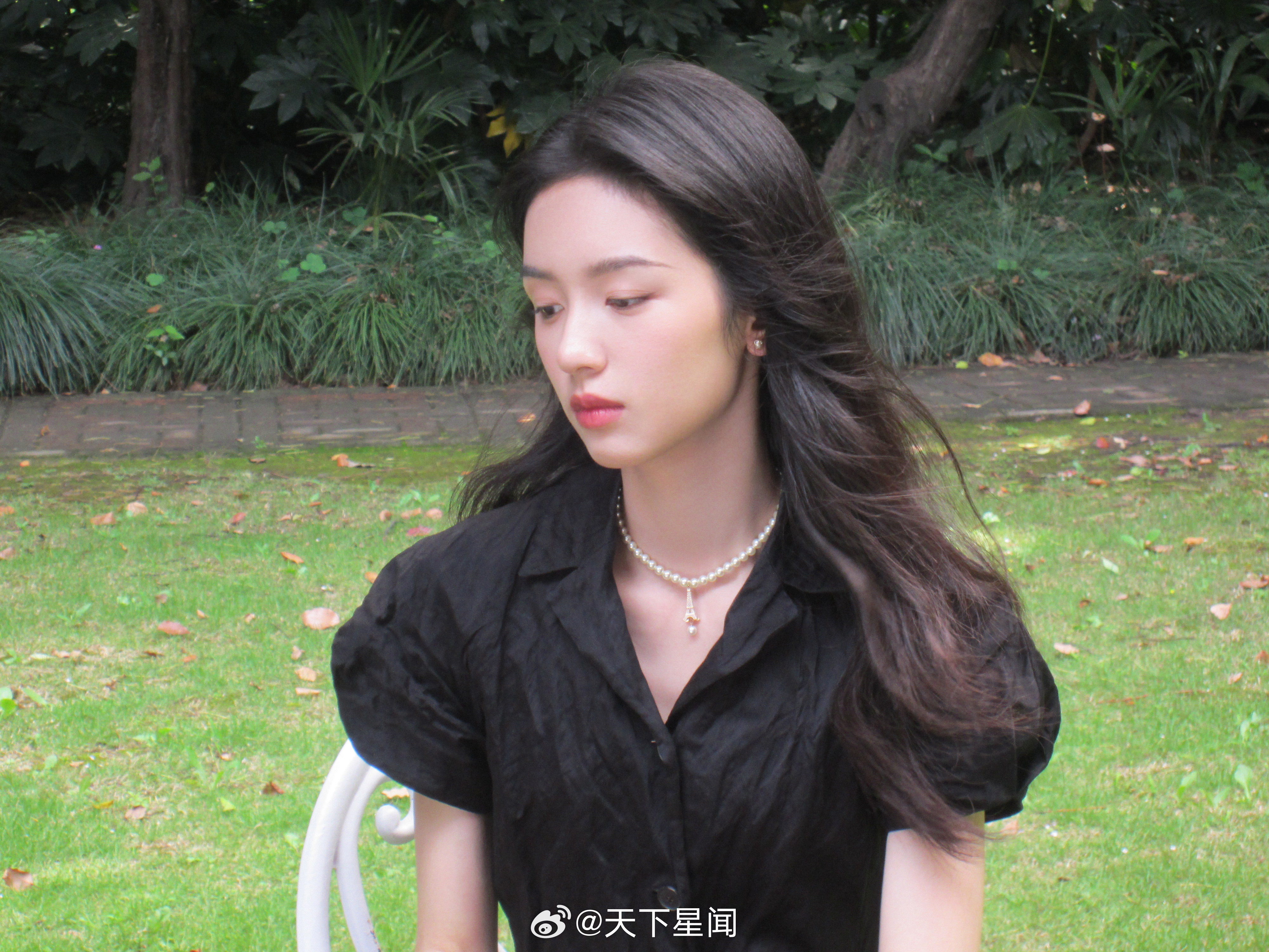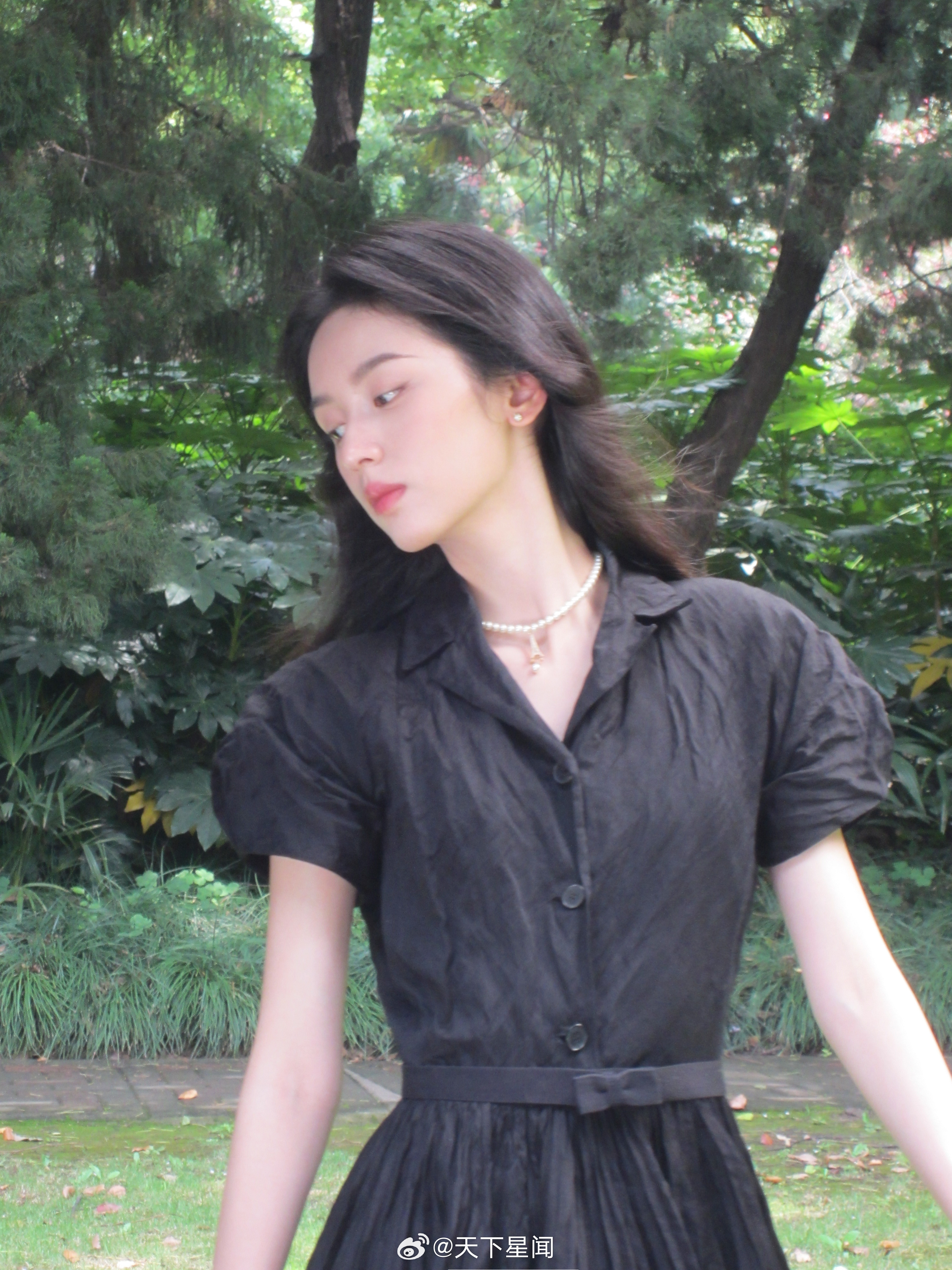刘亦菲这条裤子挺养生,毕竟降温了肚脐眼必须护住啊