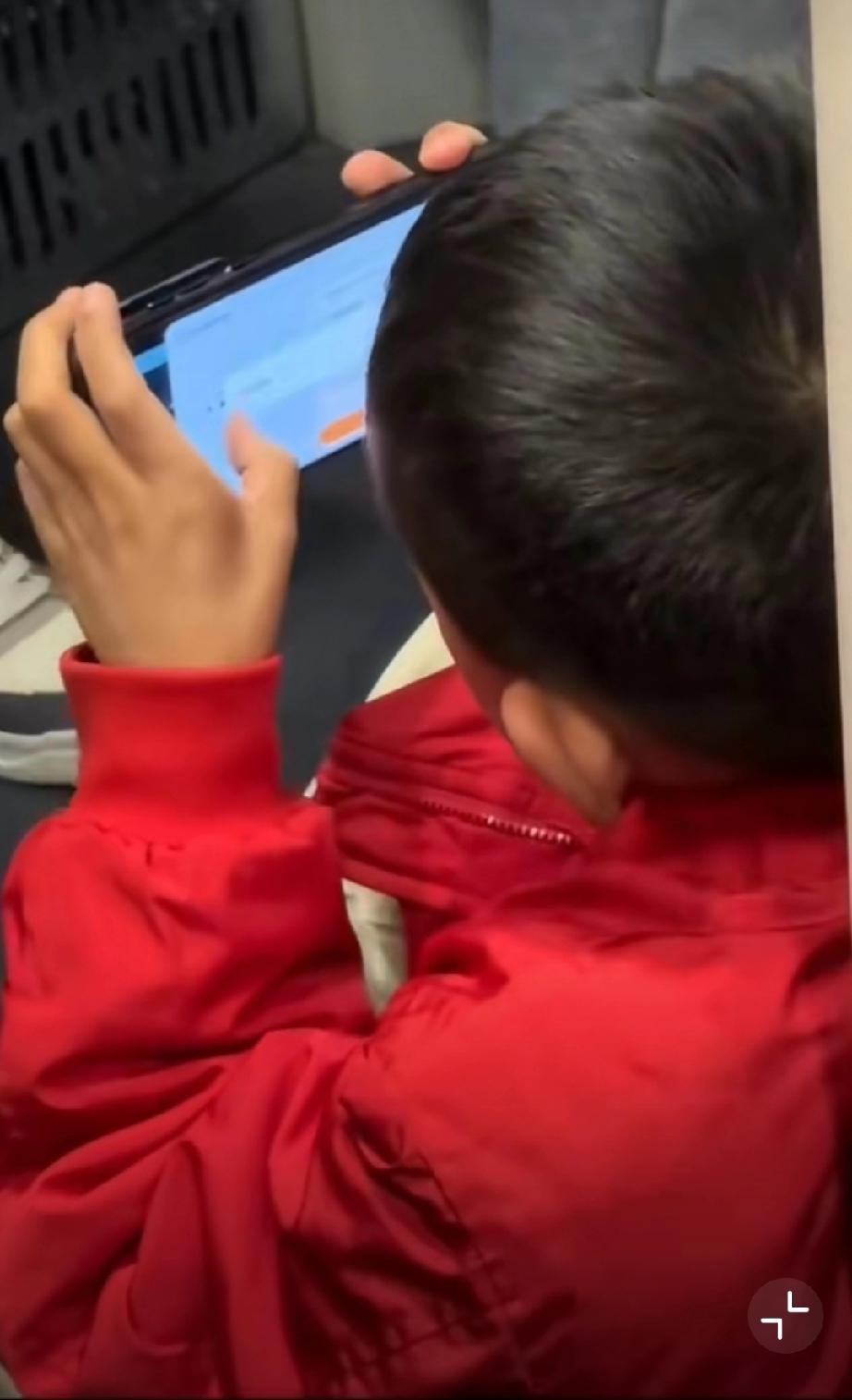成都网友在高铁上拍到的,小孩哥给游戏充钱动作娴熟!充完还把支付记录删了……[允悲] 高铁丢小孩 8岁娃坐高铁 神操作小孩哥