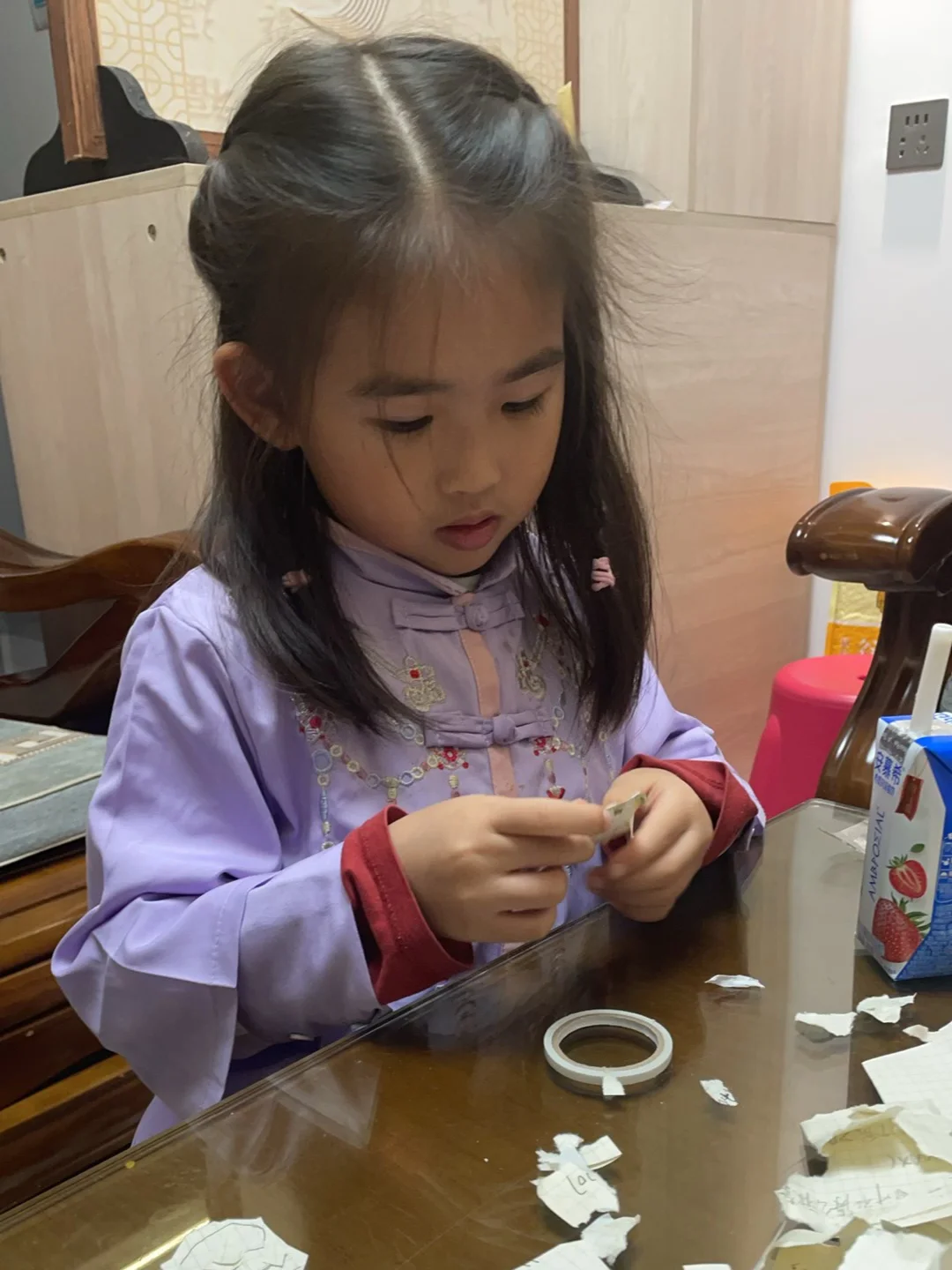 从没刻意教她,不知不觉她竟然这么沉迷手工了!