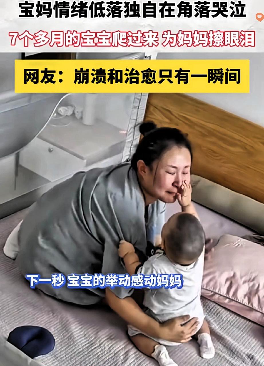 原来最治愈的安慰,从来都不用教! 辽宁这位宝妈的经历,看完直接破防了~ 宝妈突然情绪低落,躲在角落偷偷抹眼泪,怕影响到7个月大的宝宝。 可小家伙早就察觉到妈妈不对劲,摇摇晃晃地爬过去,小手轻轻拽了拽妈妈的衣角。 看到妈妈脸上的泪水,他竟然伸出稚嫩的小手,一点点帮妈妈擦掉。 就这一个小动作,让宝妈所有的委屈都烟消云散,立马抱住了宝宝。 其实宝宝哪懂什么安慰的道理,全是本能的心疼。 这种天生的共情力,才是亲子间最珍贵的羁绊。 我们总说养孩子辛苦,可殊不知,孩子才是来治愈我们的小天使,用最纯粹的爱化解我们所有的疲惫。 你家宝宝有没有过什么不经意的举动,让你瞬间觉得所有付出都值得?