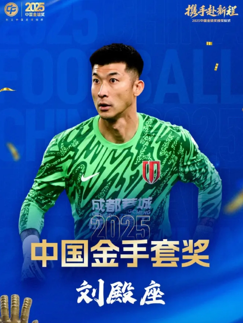 2025中国金球奖评选结果出炉:刘殿座荣膺金手套,帅惟浩拿到U17金童奖 成都蓉城在这次评选中算是收获比较多的,刘殿座的金手套可以说没啥悬念,他不仅是上赛季联赛最稳定的门将,赛季丢球数最少,也是国家队值得信赖的老将。 帅惟浩上赛季不仅在中乙崭露头角,更是在亚预赛5场9球,是目前09年龄段的头号球星。U21年龄段金童则是王钰栋。 此外,韦世豪入选了金球奖最终三人评选,但最终是吴曦拿到了奖项。以胡荷韬、木塔力甫等人为代表的中国U23男足则是拿到了组委会特别奖的荣誉。