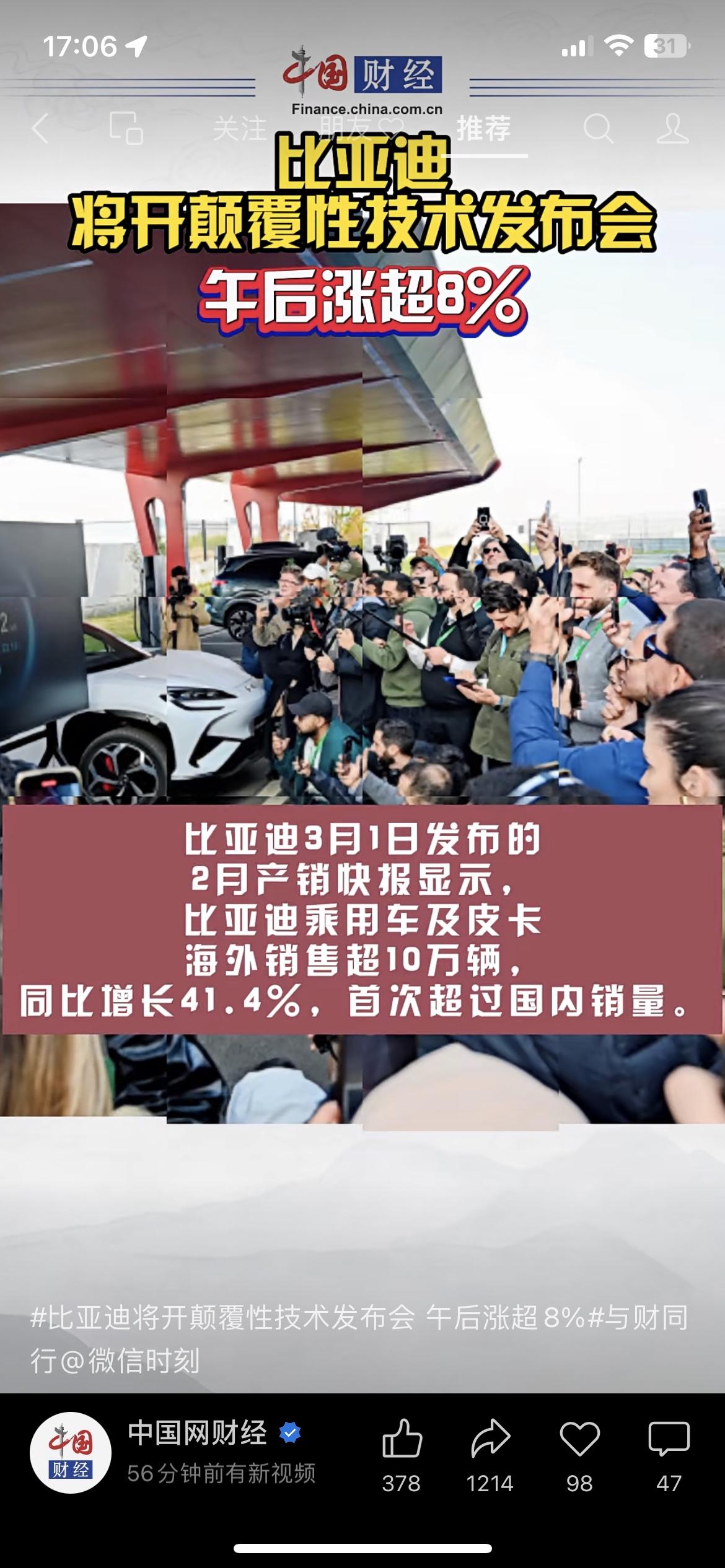 比亚迪这次真的打出新高度了,看完数据我都有点感慨。 2月海外销量直接突破10万辆,同比大涨41.4%,历史上首次海外销量超过国内。 不光销量猛,股价也跟着涨,A股大涨超8%,港股也涨超4%。 很多人还在说国产车只靠内销,现实已经完全不一样了。 说白了,这不是一家车企的胜利,是中国制造真的在往外走。 我身边开比亚迪的朋友,最近都在说身边提车的人越来越多,口碑是真起来了。 对咱普通人来说,不管买不买车,能看到国产车企走出去,都是件值得开心的事。 你身边开比亚迪的多吗?觉得国产车现在靠谱不? 比亚迪 新能源汽车 中国制造