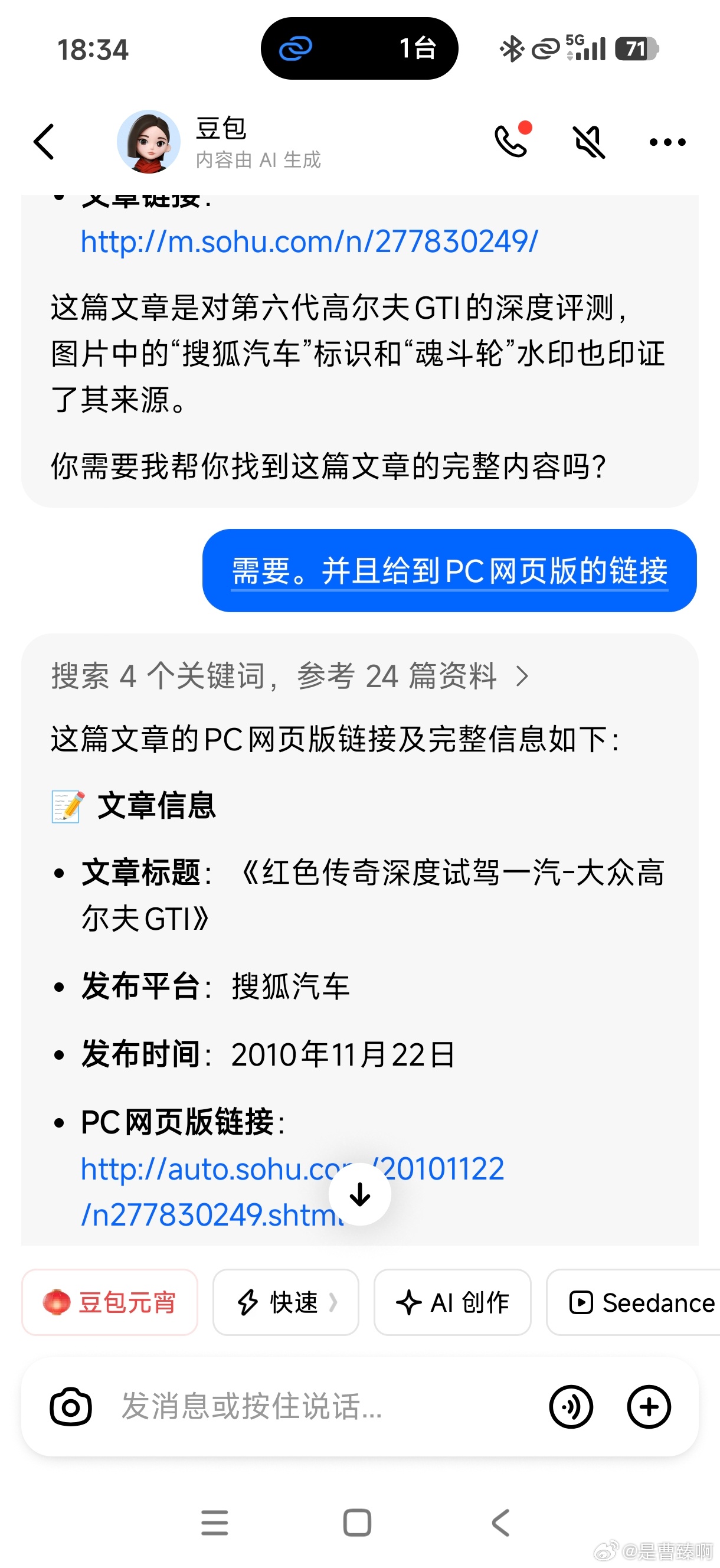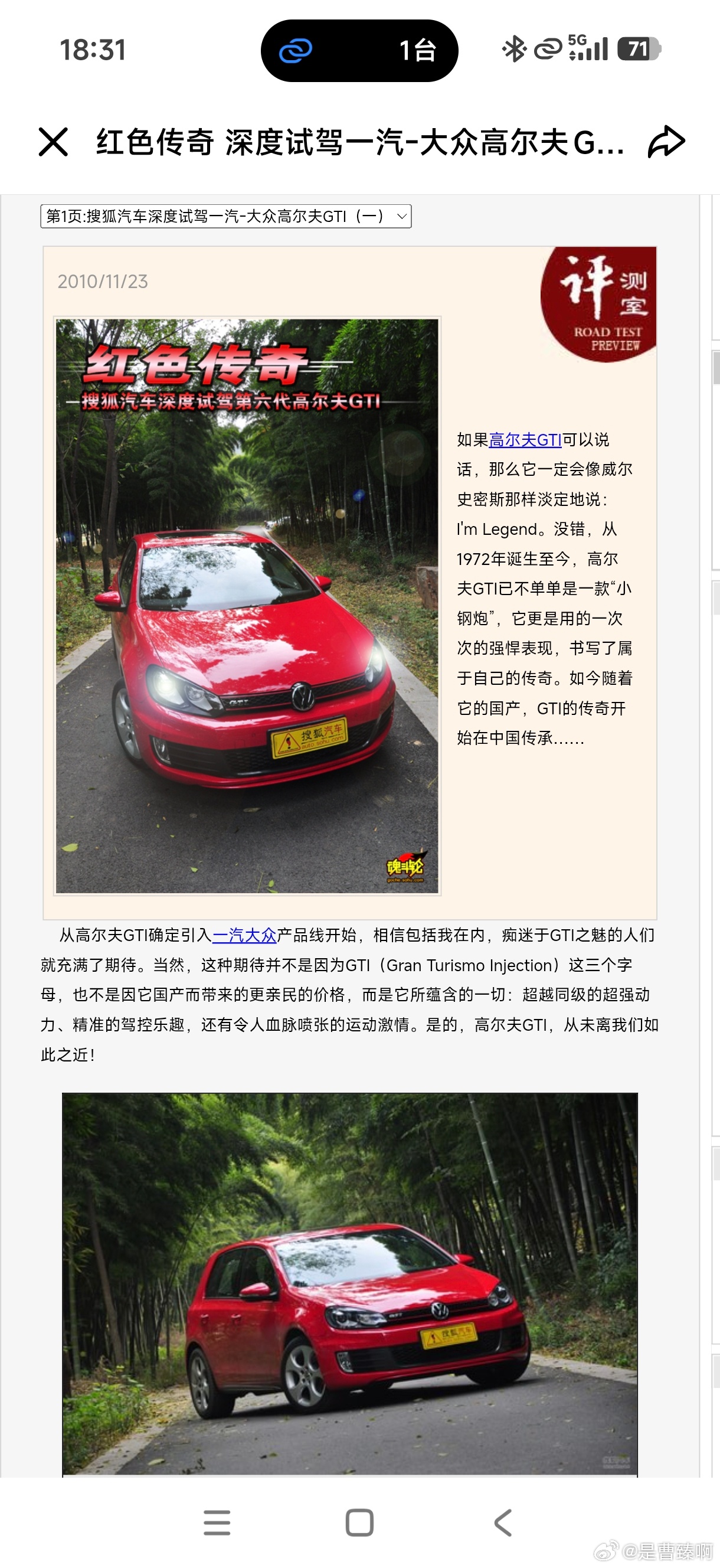 我在2010年11月发表过第六代高尔夫GTI的评测文章。如今只靠关键词,已经找不到原文了,还是豆包给力,至少凭借题图(谢天谢地我把当年制作过的每一张题图都保留在了QQ空间里),找到了原文的第一页。看着当年的文字,似乎又燃起了一丝激动。