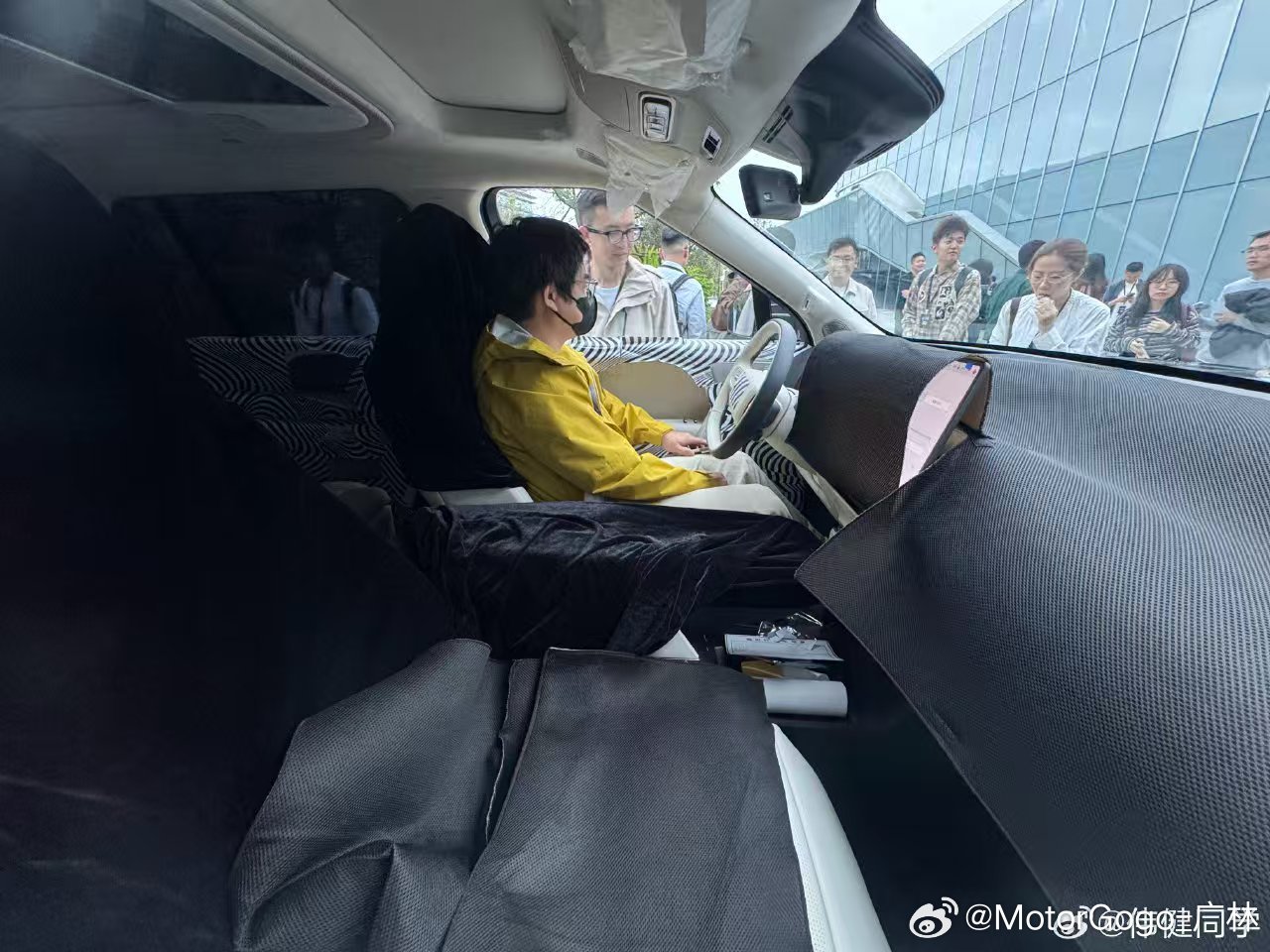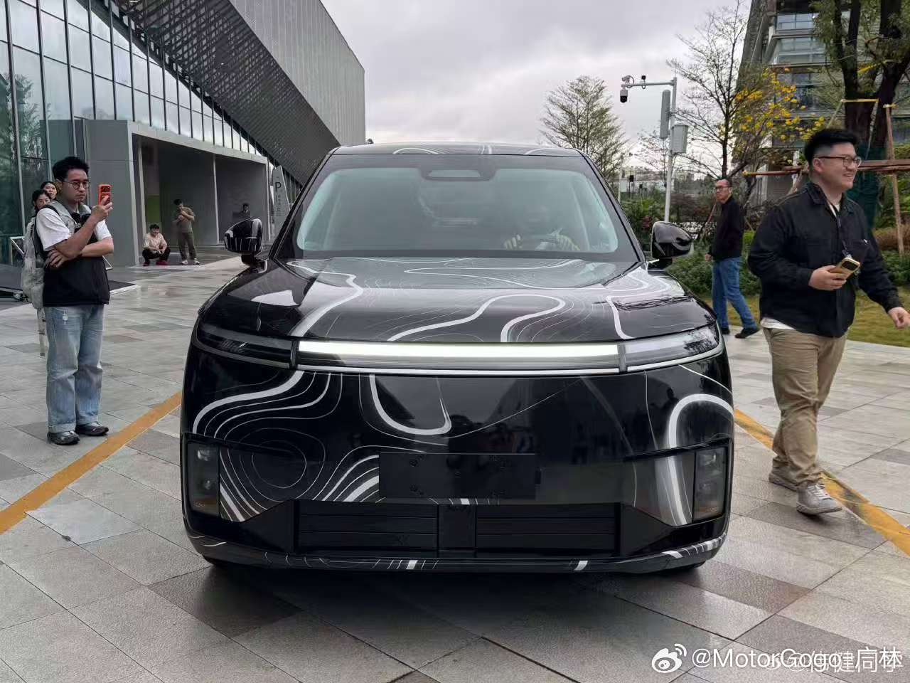 小鹏发布会开完之后,摆了一台小鹏 GX 在外场给大家看,虽然官图已经出来了,但是有几点还是挺有新意的: