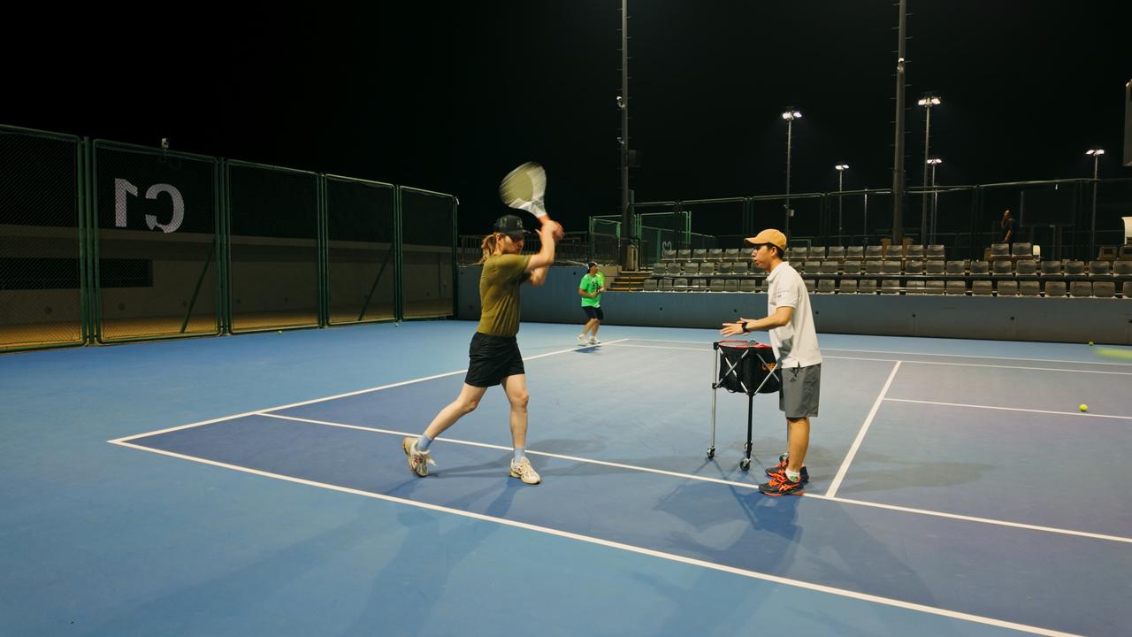 最近想接触不同的城市运动,看到网球比较热门,报了一节网球课,正好借了一台全新山海L9,晚上试驾体验一下这款车。 晚上来到国家网球中心,也顺便解锁一项新运动,这么好的场地也没有上场打一下,只是在场边练习发球。【来自懂车帝车友圈】