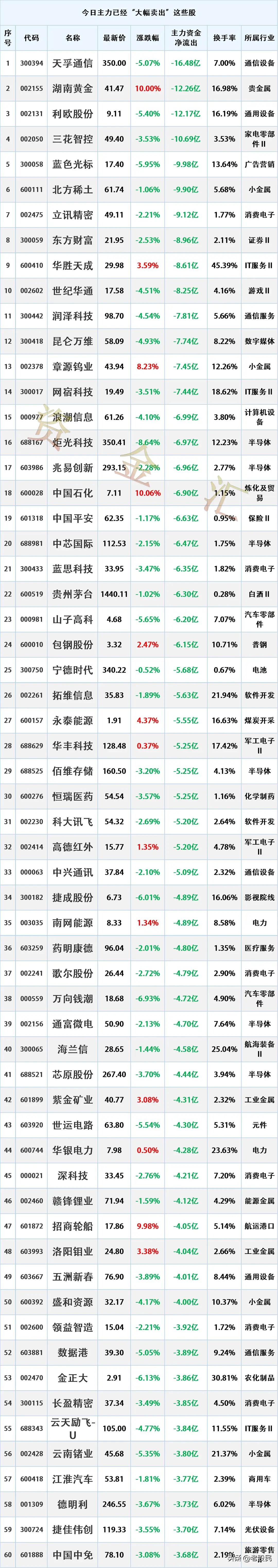 资金提前出逃,3月2日主力资金“最大卖出”个股名单 时间2026-3-2 18:01:44