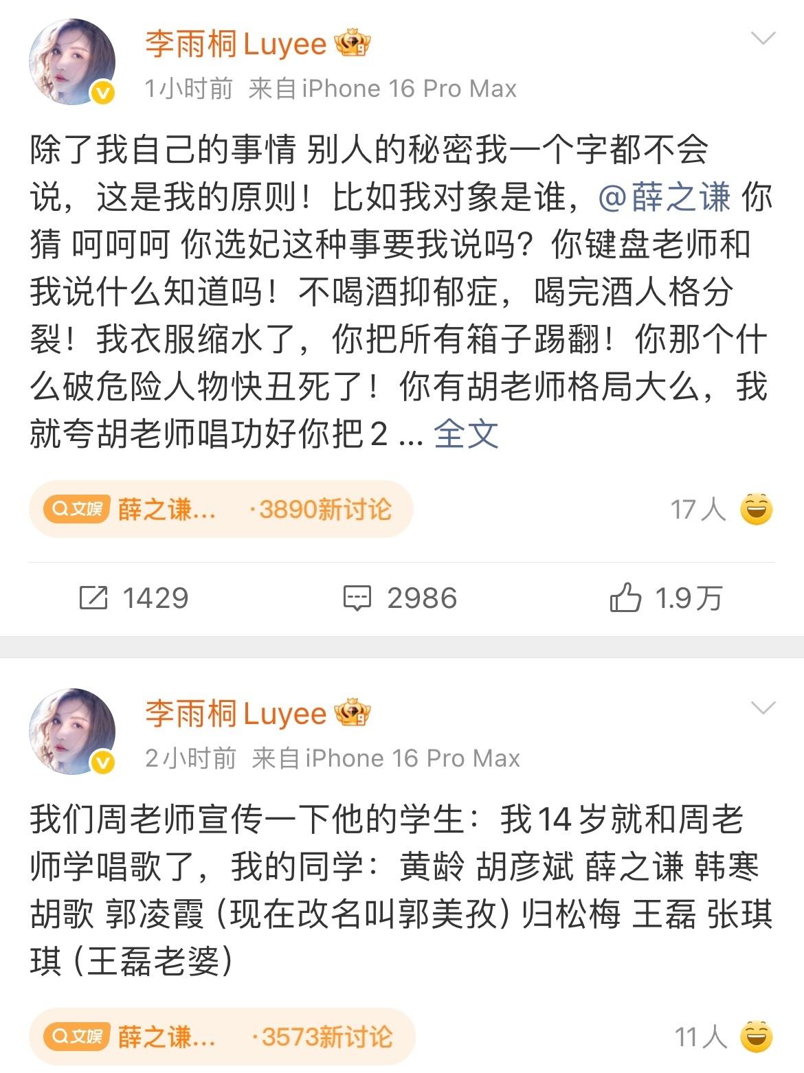 李雨桐连发三条爆料, 薛之谦这回真要塌房? 今天刷微博,热搜直接被李雨桐和薛