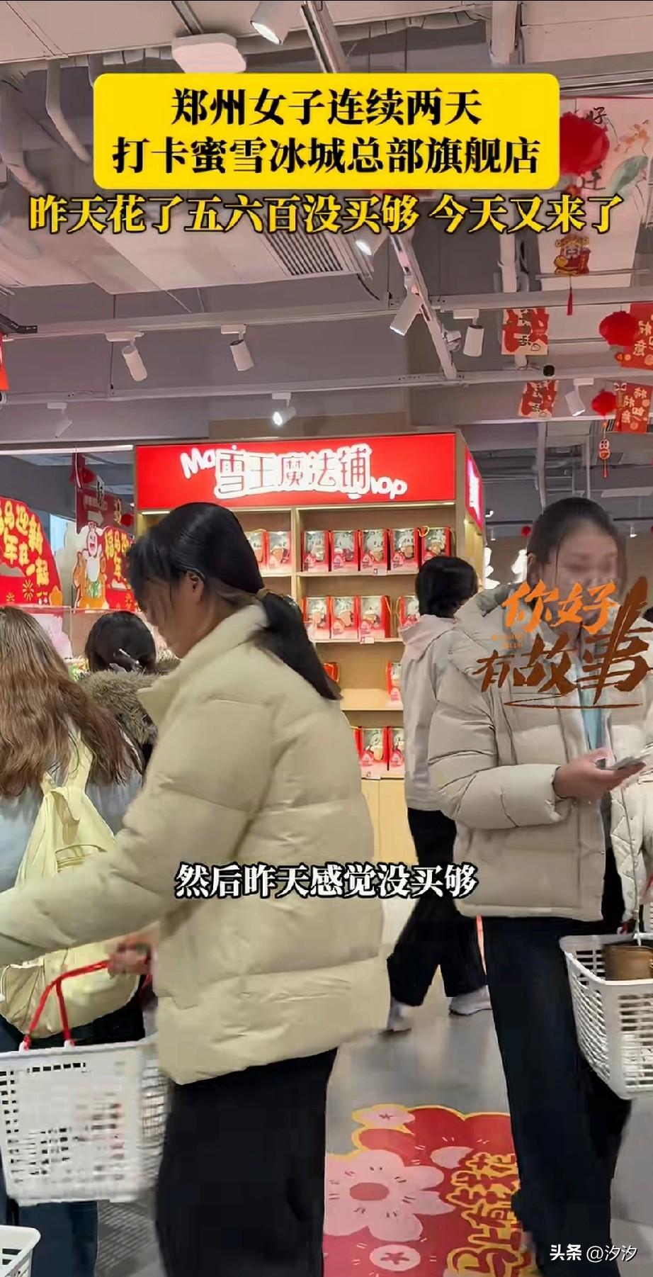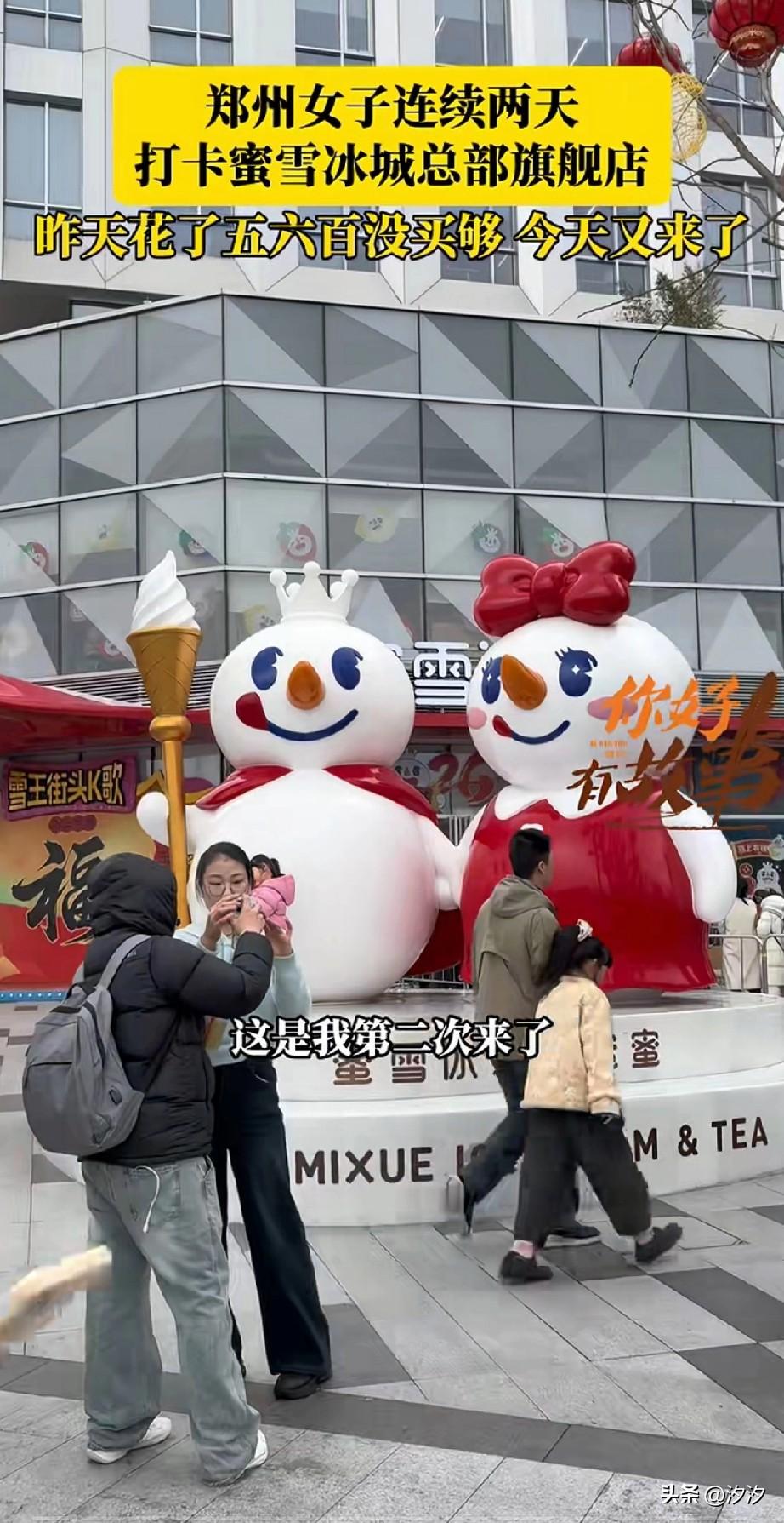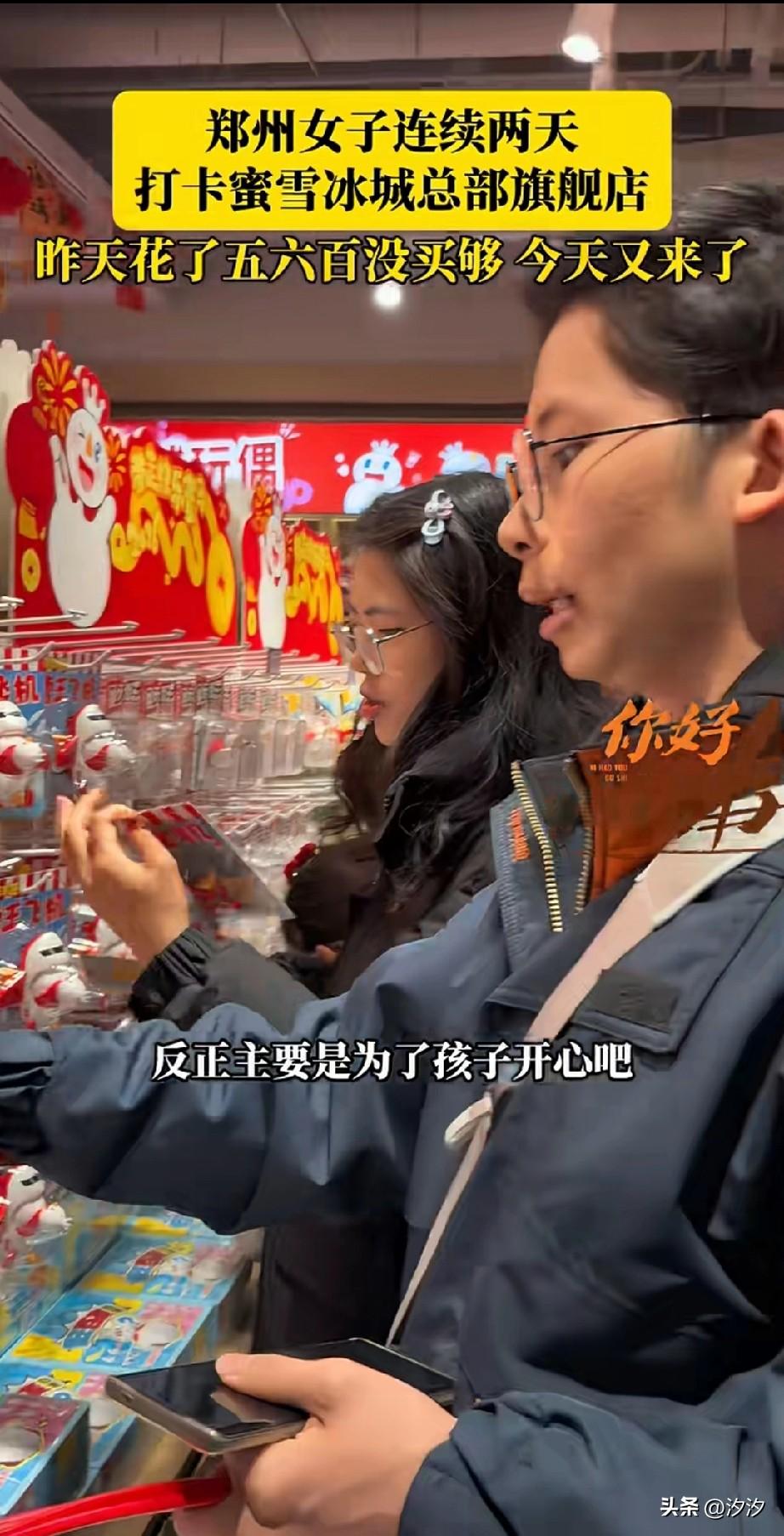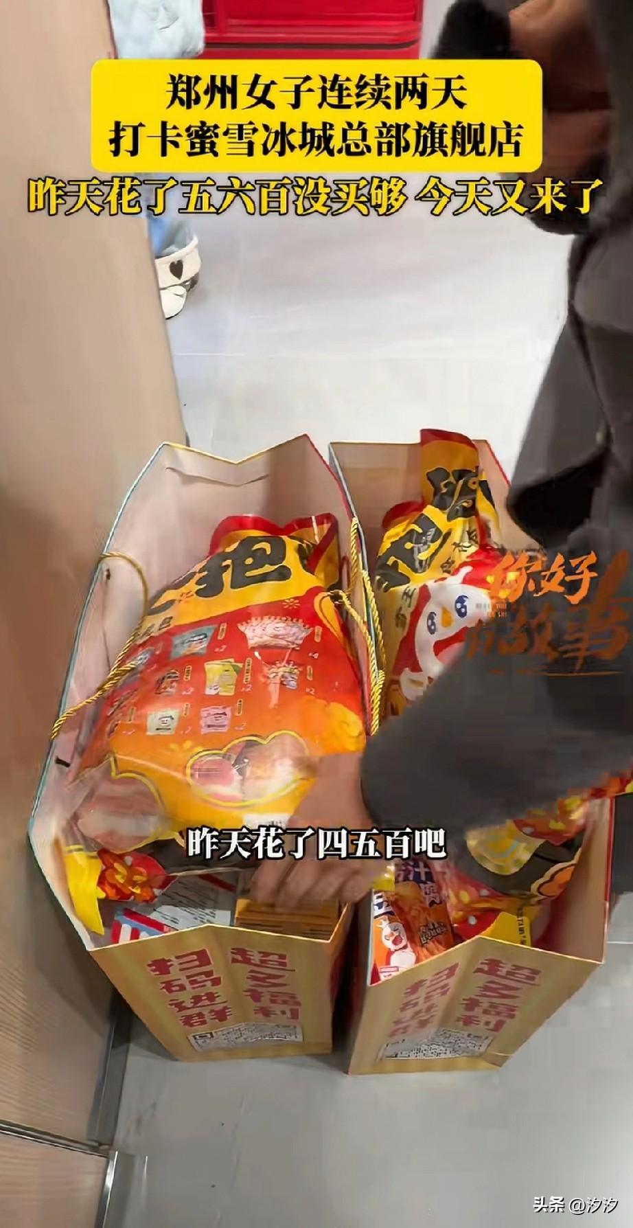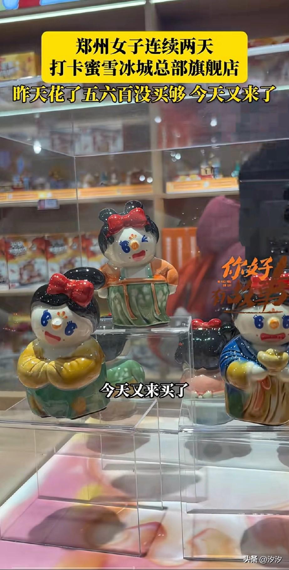 这两天郑州的蜜雪冰城火了, 你以为在蜜雪冰城只能买饮料, 实际上的蜜雪冰城旗舰总店, 那可是什么都有, 不仅有你没喝过的新品, 还有很多小零食, 以及孩子们喜欢的盲盒, 更有可爱的玩偶, 很多市民纷纷前往蜜雪冰城总店, 开启了疯狂购物模式, 这次讲述了自己两天花了五六百, 通通都是买一些零食和玩偶, 毕竟孩子很喜欢, 让他们快乐最重要, 五六百也花的不多, 帮自己的同事代购了一些, 大家有去过郑州的蜜雪冰城总部吗? 蜜雪总部在郑州