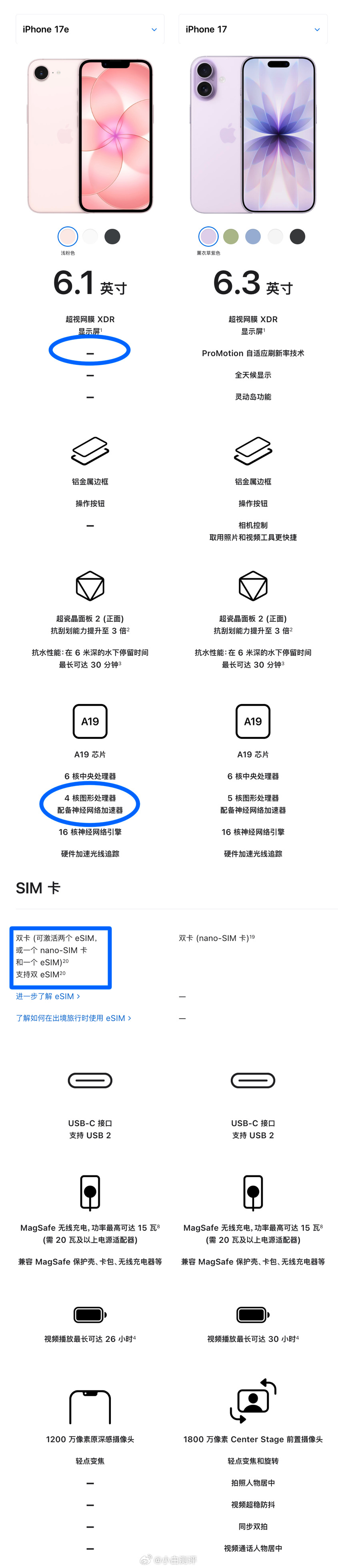 iPhone17e浅粉色iPhone17e发布这应该是苹果首次为SE/e型号推出浅粉色?提几个iPhone 17e的细节:无高刷,还是6.1英寸刘海屏,但升级了超瓷晶面板二代,搭载的A19芯片是4核GPU版本,不支持实体双卡,支持双eSIM,或者单卡➕一个eSIM,256GB版4499元,512GB版6499元,俩版本差2000,有要入手的吗