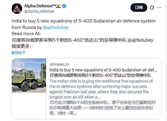 印度将向俄罗斯采购5个新的S-400"苏达山"防空导弹中队 印度钱太多了吗?根