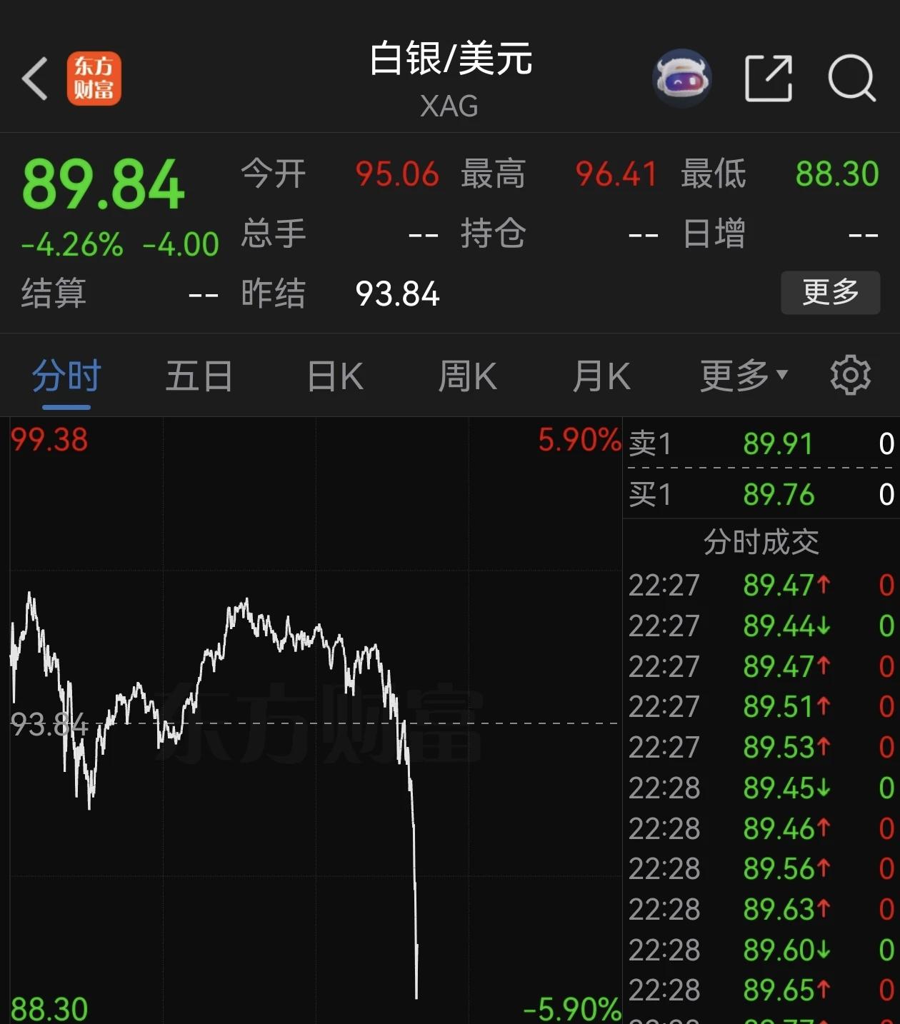 突发,白银直线跳水! 对于普通投资者来说,这几天千万不要去碰石油,黄金白银,因为这种暴涨暴跌的走势,普通投资者很难把握,很容易造成巨大亏损,往往会造成你追高进去就暴跌,你割肉之后,又开始暴涨!