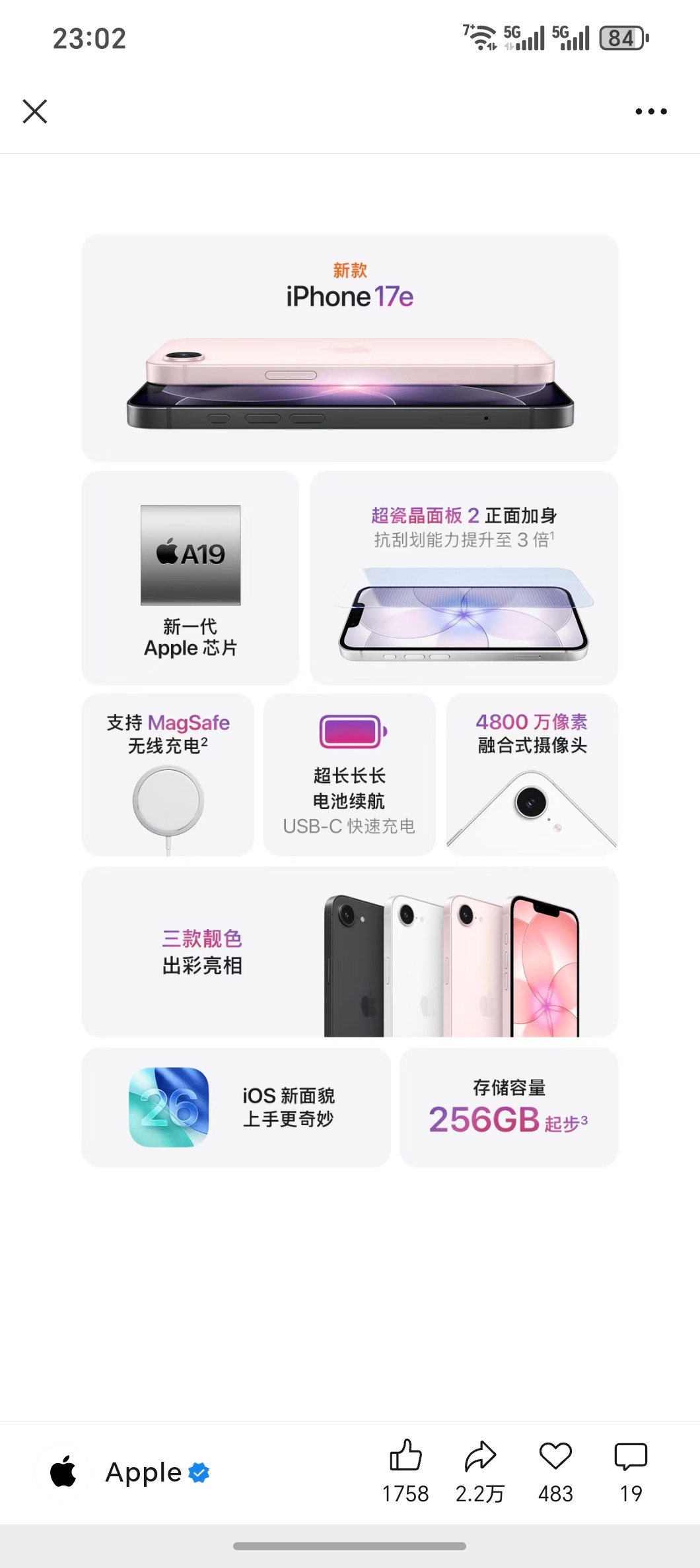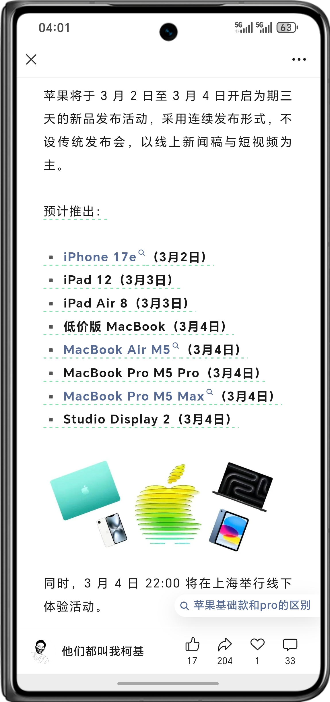 iPhone17e发布果然来了!祖传60Hz刘海屏,单摄,单卡+eSIM还有M4芯片的iPad Air,4799起接下来几天MacBook和显示器