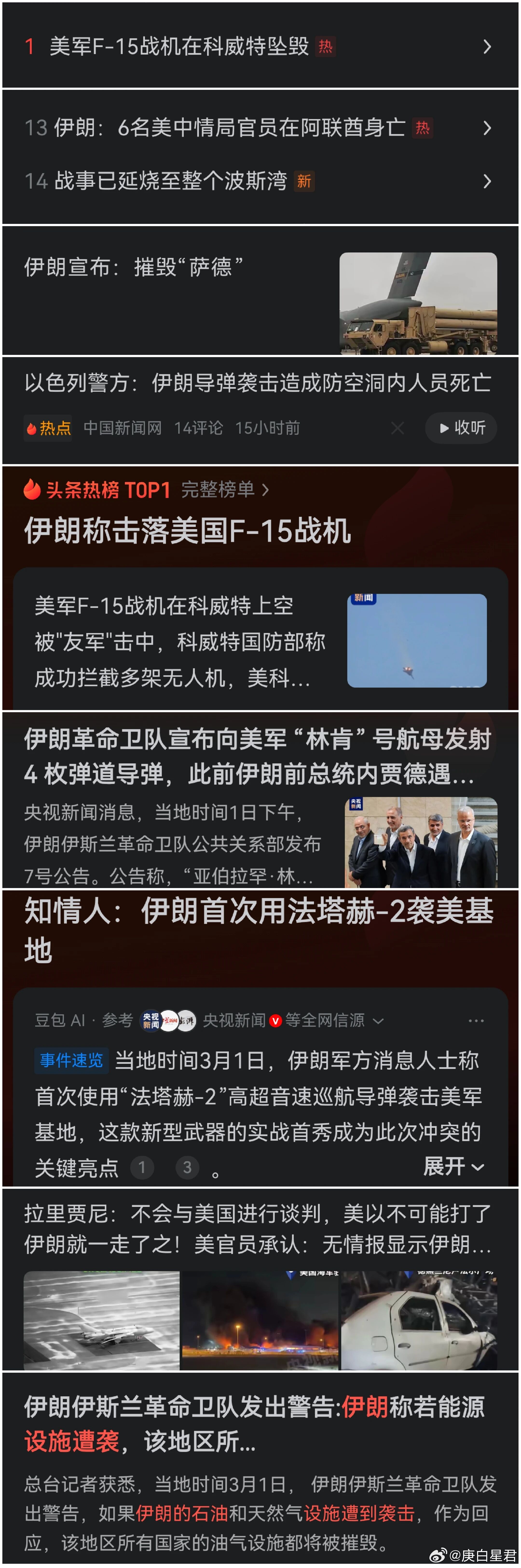 为啥这么说?看战报:虽说战报会说谎,但从上述一系列动作我们对比哈梅内伊遇害前伊朗对策,可以发现极为明显的差异:伊朗真敢打了!且哪怕美以利益舆论网络信息优势,弹压遮蔽了许多对自身不利的战报信息,社交媒体上流出的图视频,或美以自己侧面证实,经过多方交叉信源证实的伊朗战果还是有不少的,如:美军一座“铺路爪”战略雷达;以色列总参谋部大楼;美军中东多个军事基地;一架美军F-15战斗机;以色列多座军事基地;美军第五舰队后勤/指挥中心;美军一艘弹药运输舰;多架美军MQ-9无人机......这种情况,哈梅内伊在世的时候有过吗?2020年1月,特朗普不讲武德,以私下协调反恐名义忽悠苏莱曼尼到伊拉克,掌握其行踪偷袭刺杀。当时伊朗明显占据道义高地,且美国特朗普当局内外远没有当下这在权威,到处退群惹众怒,伊朗可以说内外都有强大力量,支持其展开对美反击。伊朗当时调门也起得很高,升起了象征复仇的血红色旗帜。就当全球以为伊朗雄起,会大干一把的时候,传来了伊朗通过所谓第三方渠道,告知美国提前撤离,然后再实施打击的消息,让全世界目瞪口呆:裤子都脱了,就看了这么一场戏。虽然都是草台班子,伊朗提前通知的情况下,美军中东基地在导弹袭击下依然出现了不明数量“脑震荡”的美军,伊朗看上去挣回了一些面子,但这样充分暴露了伊朗决策层“怂包”的本质。后续类似事件持续发生。2024年4月,在以色列明显违反国际法轰炸伊朗驻叙利亚外交机构,伊朗明显师出有名的情况下,伊朗发起的“真实承诺1”行动,竟然再次提前告知美国,让美以摆好层层拦截的“龙门阵”后,再发起所谓的导弹+无人机报复行动。这种“自欺欺人”的“赢学”行动,能震慑豺狼?结果可想而知:2024年7月以色列又在伊朗首都暗杀了参加伊朗新任总统就职活动的,哈马斯政治领导人哈尼亚。可伊朗还是沉迷表演与作秀,当年10月发起的“真实承诺2”行动,又一次雷声大雨点小,发射200导弹战果寥寥,白瞎了高超音速导弹这么好的武器。以色列拼命玩“斩首”,难道你伊朗就不能搞一次突袭,斩首几位以色列决策的高官进行真正的震慑?炸几个军事基地,不是连续的战役行动,毛作用都没有。2024年伊朗接连丢掉了哈马斯、叙利亚屏障,让以色列打通了轰炸伊朗本土的通道。去年6月的12日战争,伊朗再次占据着道义高地,哈梅内伊的“真实承诺3”行动,再次看上去荒诞不经。以色列明显防空弹药不足,系统崩溃,正是伊朗一股作气打击以色列嚣张气焰的好机会,可是偏偏哈梅内伊的伊朗,竟然大好时机发“召回金牌”,错失了重创以色列的机会,让以色列再次在美西方筹措了进攻弹药。真实承诺行动,3次啊!算上苏莱曼尼是整整4次。一次是失误,二次是磨炼,三次要做对了吧?可是第三、第四次,还是错失机会。伊朗哈梅内伊偏偏不,一次一次“戏弄”全球,让世界目瞪口呆其下“大棋”,赢麻了。天予不取反受其咎!或许有人说伊朗被渗透成筛子,可真正原因或许没有其他,就是哈梅内伊本人,不然2024年那种局面下,为何选了一个亲美,对促成沙伊和解东大不友好的佩泽希齐扬上台?你看哈梅内伊走了后,伊朗实施的“真实承诺4”行动,简直就是两支军队干的活。在写文章时,又看到美军战机不只是损失一架,而是科威特国防部证实:多架美军战机在科威特坠毁!要是哈梅内伊在世,伊朗会有这种战果?从前面4次,注意是4次出场机会看,答案显然是否定的。不仅缺乏持续作战的斗志,还对伊朗武装部队的发挥,进行了各种掣肘,10分力,或许最多发挥出了6分,甚至是5分不到。美以这次自以为的巨大“成功”,或许是搬起石头砸自己的脚,彻底搬掉了压制伊朗武装力量,特别是伊朗革命卫队身上的绳索。加上美国将伊朗革命卫队定性为“恐怖组织”,且战前美以还推动欧盟也这样进行了定义,几乎堵死伊朗革命卫队的生路,使得他们唯有自己打出统战价值,才能真正谋得一线生机。哈梅内伊在世时,伊朗国内政治局势,其实是他支撑了伊朗世俗派的力量,是他压制了伊朗革命卫队这头政治经济怪兽。现在美以第一波打击,事实上是帮革命卫队砸掉了笼子。你看3月2日特朗普在喊“谈判”时,伊朗目前事实上掌权人拉里贾尼的回应:不会与美国进行谈判!这在哈梅内伊时代,是不可想的。或许对伊朗,特别是伊朗革命卫队来说,哈梅内伊最大的价值,其实就是这次“殉道”,美以帮他们完成了!