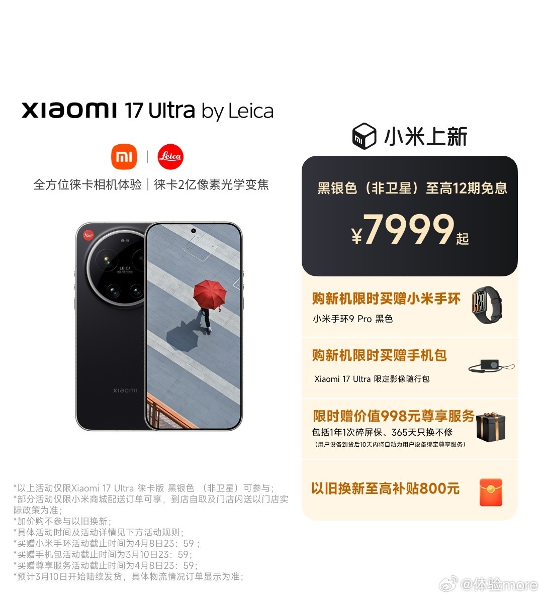 小米17Ultra徕卡版黑银色正式发布小米17 Ultra徕卡版「黑银色」开售了,价格不变,竖向logo,这个设计国内很多用户都很喜欢,觉着更有徕卡味,和国际版 Leitzphone powered by Xiaomi不同的是,依然是6800mAh大电池,真不错,你要知道国际版售价超1万6,现在国行版只需一半价格就能买到,还是大电池,欧洲用户得非常眼红我们的价格哈哈。