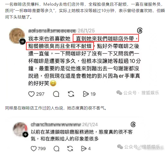 不久前,康熙老熟人Melody被网友吐槽对服务人员态度差,引发关注。Melody