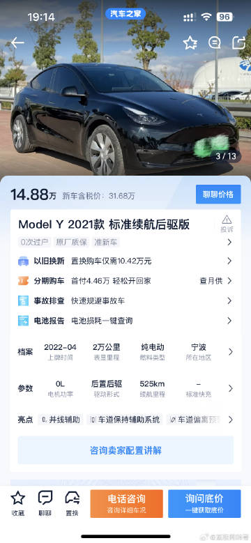 ModelY二手价格才14.8万?新车落地价30万啊,直接折损15万...