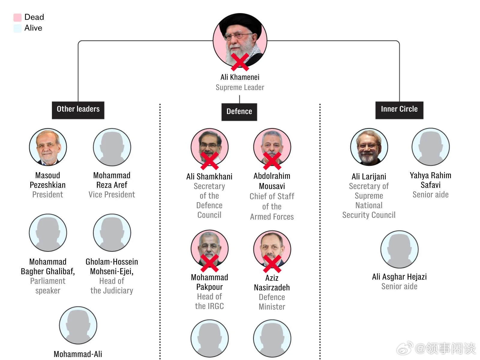 最初,伊朗领导层声称最高领袖已被安全转移出德黑兰。外交部长阿巴斯·阿拉格奇声称他仍然活着——“据我所知”。