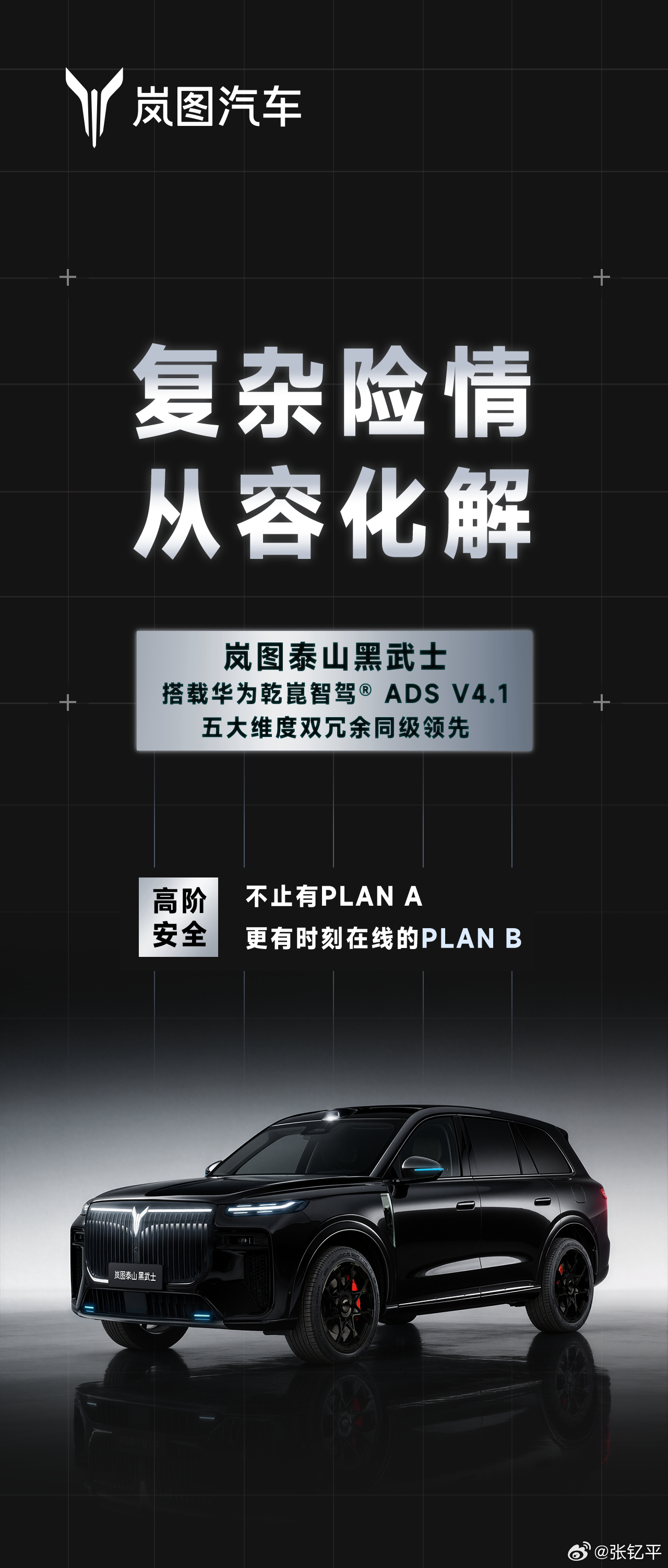 岚图泰山黑武士配色,挺霸气啊。智驾有ADS4.1,加上口碑不错的底盘,这就是一台好开的车。新能源汽车