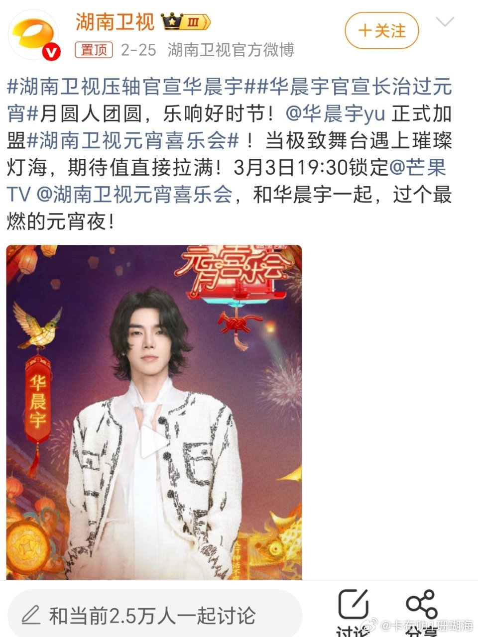 湖南卫视元宵晚会压轴宣华晨宇,这牌面怎么样?