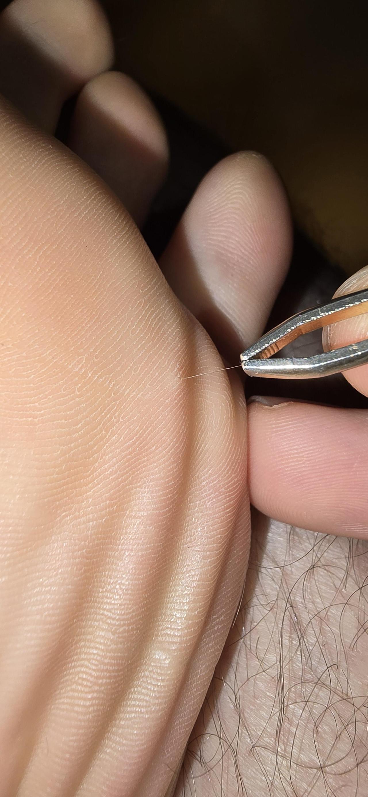 有人在自己脚底板上发现了一根孤零零的毛,还特写了用镊子拔它的照片。评论区里大家看法不一,有人觉得这可能是根刺进皮肤里的毛发碎片,就像那种狗毛扎进皮下的感觉,还问楼主是不是养了白色短毛狗,有人开玩笑说楼主是不是把神经给拔出来了,更多人还是觉得这不太可能是从脚底长出来的头发,大概率是哪里粘上的毛发刺进了皮肤里。