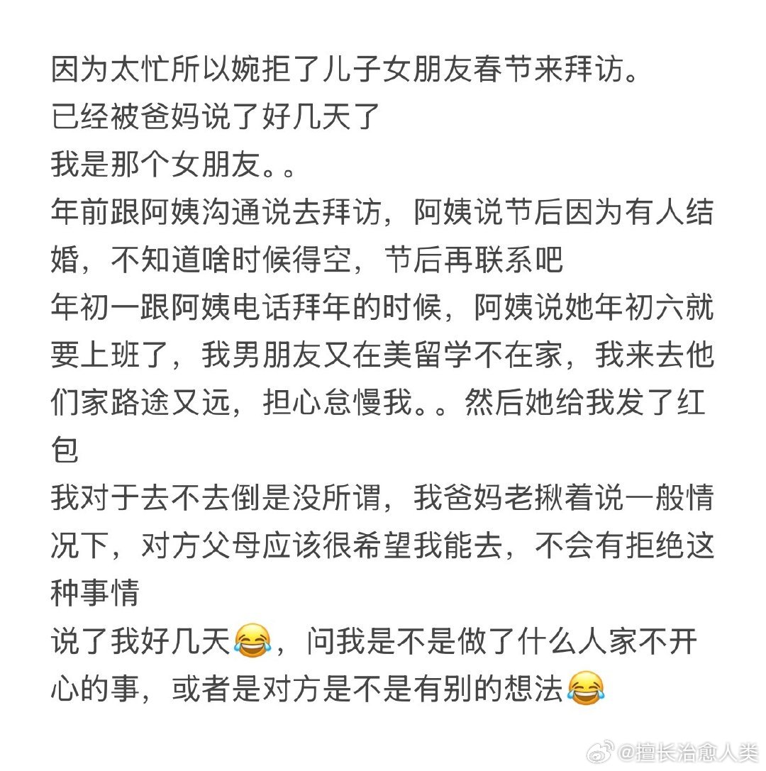 因为太忙,所以婉拒了儿子女朋友春节来拜访