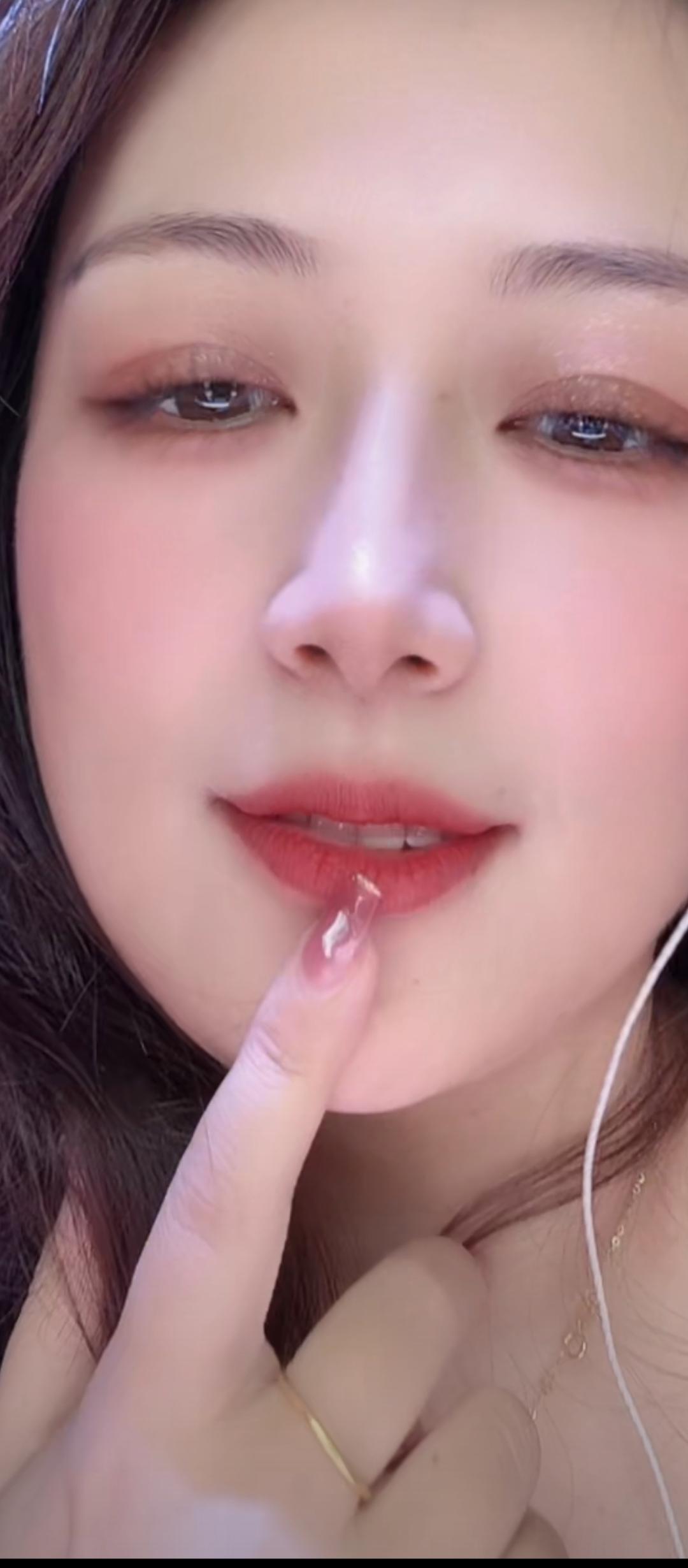 轻抚朱唇,似有千言。