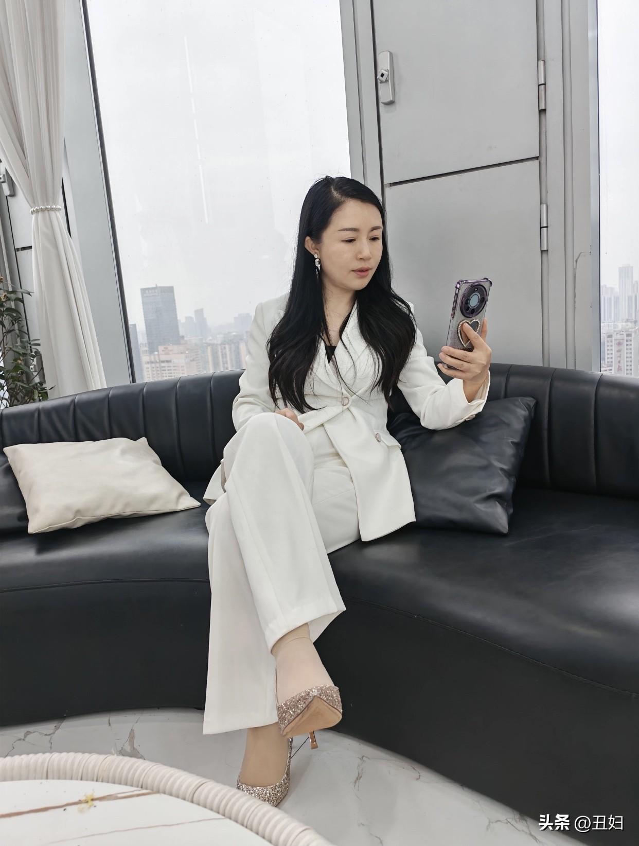 春日里,“一身白”的搭配也很绝。奶白或米白外套,搭配同色系真丝吊带与垂感阔腿裤,不同材质的白营造丰富层次。翻领设计修饰颈部,收腰腰带掐出高腰线,短款版型拉长比例。从办公室到咖啡间,甚至下班后约会,它都能无缝切换,展现专业又温柔的魅力。