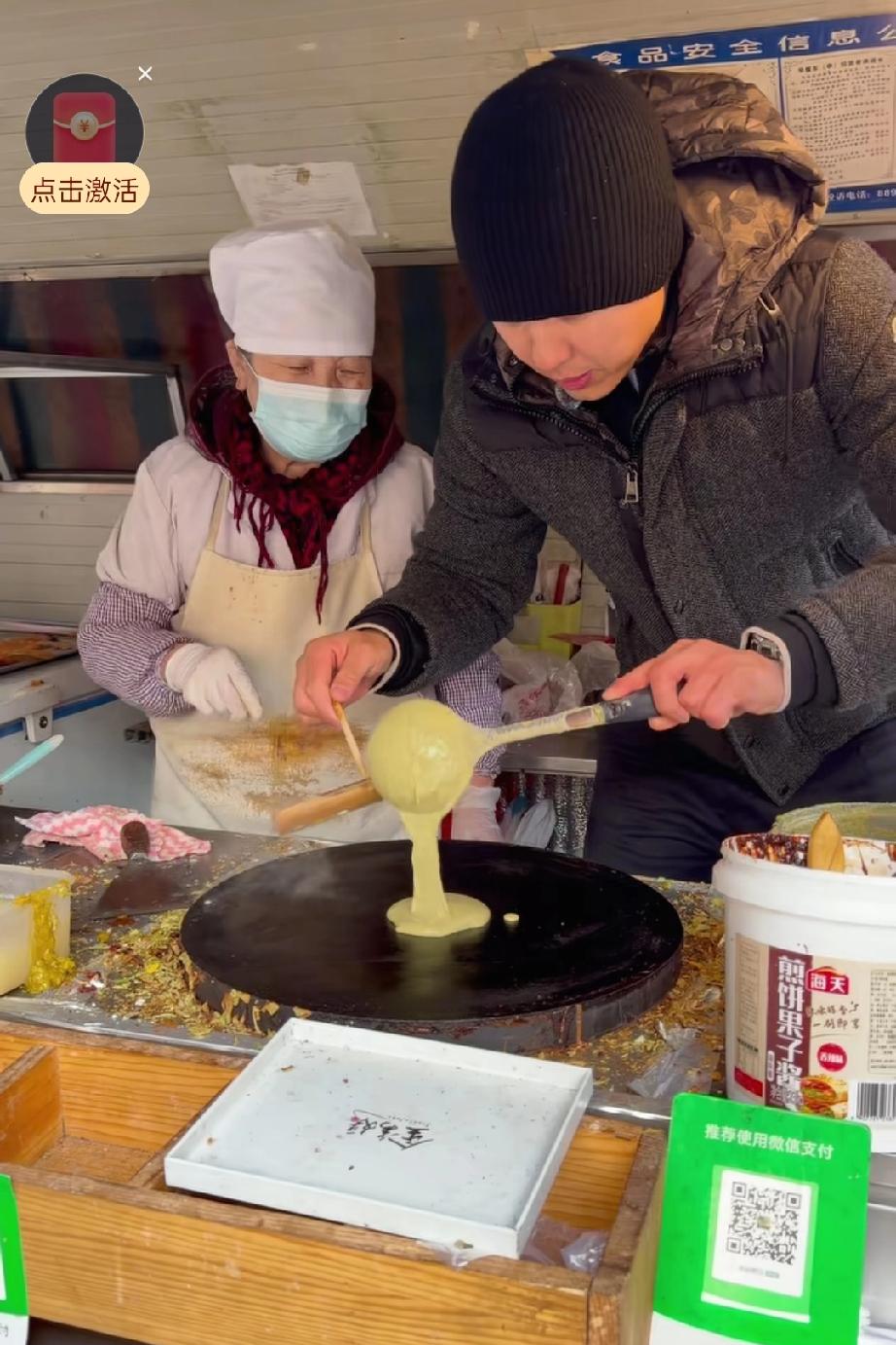 “义渠君”高云翔自那件事后,也没人找他拍戏了,为了维持生活,他也入驻抖音了,想通过拍短视频分一杯时代的羹。他来到煎饼果子摊前,问摊主阿姨做这个多少年了,阿姨说干了30年了。高云翔说我也失业了,阿姨你教教我吧,说着他就真的上手了,自己做了一个煎饼果子,别说还做的挺成功的。