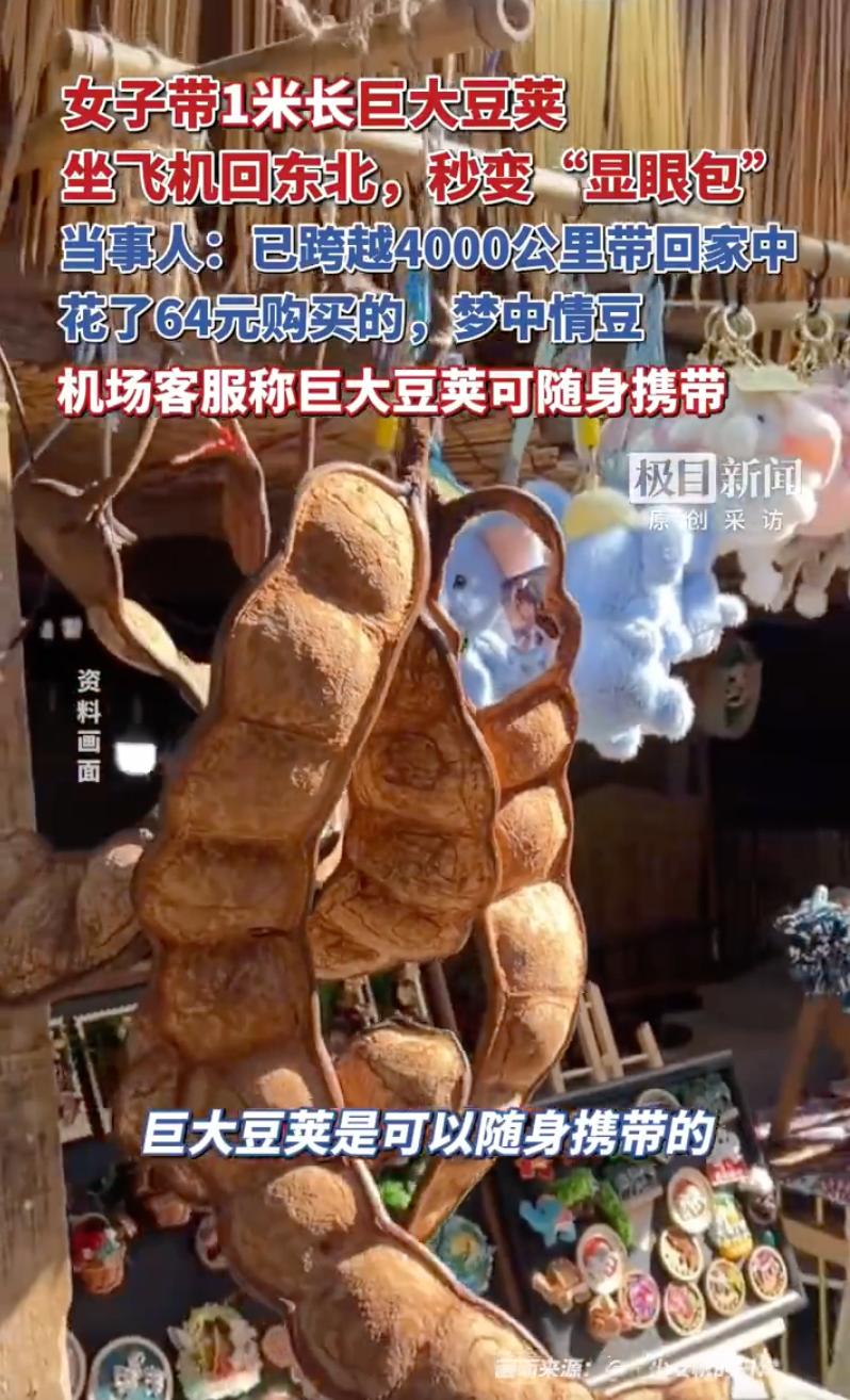 这是真牛!辽宁大连的陈女士最近彻底火了,她从云南花64块钱买了个一米多长的巨大豆荚,一路盘在肩膀上坐飞机、转机,跨越了整整4000多公里把它带回了东北老家,机场安检和路人全都看呆了,网友调侃:这哪是豆荚,这分明是盘了条“大蛇”在身上。 这豆荚长得确实稀奇,外皮深褐色,皱巴巴的,弯弯曲曲扭成一团,要是没个心理准备,猛一看真能把人吓得一激灵,陈女士却稀罕得不行,管它叫“梦中情豆”,为了把它弄回家,她先从普洱飞成都,再从成都转机回大连,一路上这个“显眼包”吸足了眼球,连机场客服都专门回应了,只要不超重,这玩意儿随身带上飞机完全没问题。 据了解,这种巨大的豆荚学名叫榼藤,民间俗称“过江龙”,是咱们中国个头最大的豆荚,能长到一米多长,当地人看惯了觉得没啥,但外地游客瞧着新鲜,几块钱一个豆粒,买回去挂在家里当摆件,确实挺酷炫,还有人拿它做手工小娃娃,萌得不得了。 不少网友看完也想整一个,有的说这东西背在身上走在东北大街上,回头率绝对拉满,还有云南本地网友纳闷,这玩意儿满大街都是,外地人咋这么宝贝。 不过这豆荚虽然好看,带回家可得留个神,这种植物之所以能长这么大,其实是为了繁衍,等它彻底干透了,为了把种子送得远一点,豆荚会突然“砰”的一声发生爆裂,那动静大得跟放炮仗似的,种子能直接崩飞出好几米远,要是正好有人在跟前,还真容易被伤着,之前就有网友遇到过,在家放着好好的突然“炸了”,满屋子找豆子。 话说回来,这东西在咱们传统文化里寓意好得很,讲究的是“多子多福”和“四季平安”,因为它形状特殊,里面豆粒多,还有“福禄寿”和“母子平安”的好彩头,买回去处理好了挂在墙上,既是天然的艺术品,又能讨个好寓意,确实是居家装饰的神器。 看的是豆子,带回的是福气,这种跨越几千公里的浪漫,也就咱们这种爱生活的“显眼包”懂。