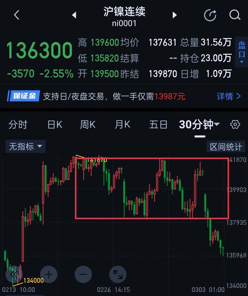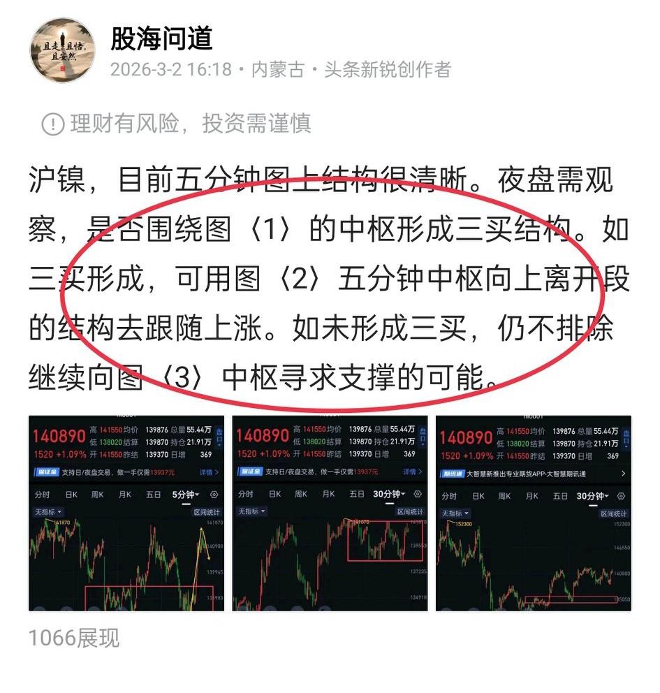 沪镍,夜盘并未形成图〈1〉的三买,随后下破中枢,继续向图〈2〉五分钟中枢寻求支撑。今天日间交易需观察136410是否有效站稳。站稳,有望继续演绎图〈4〉五分钟中枢震荡。如不能有效站稳,则可能在138020下方形成新的一分钟下降中枢,后期要防止图〈2〉的五分钟中枢被破坏,如出现此结构,短期只能暂看129300的支撑作用。
