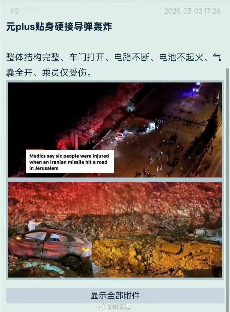 比亚迪元plus贴身挨了一发导弹整体结构完整,没有起火