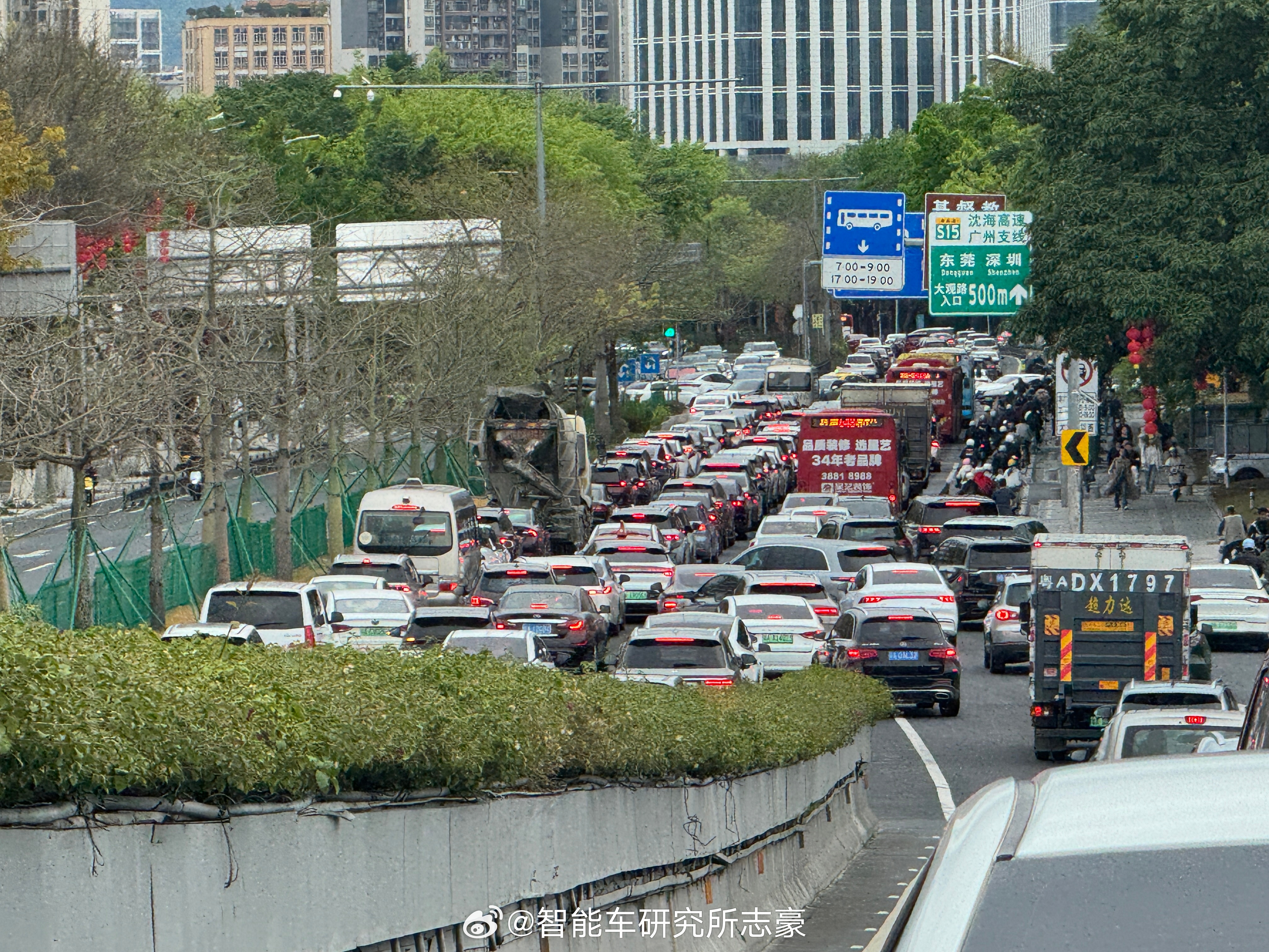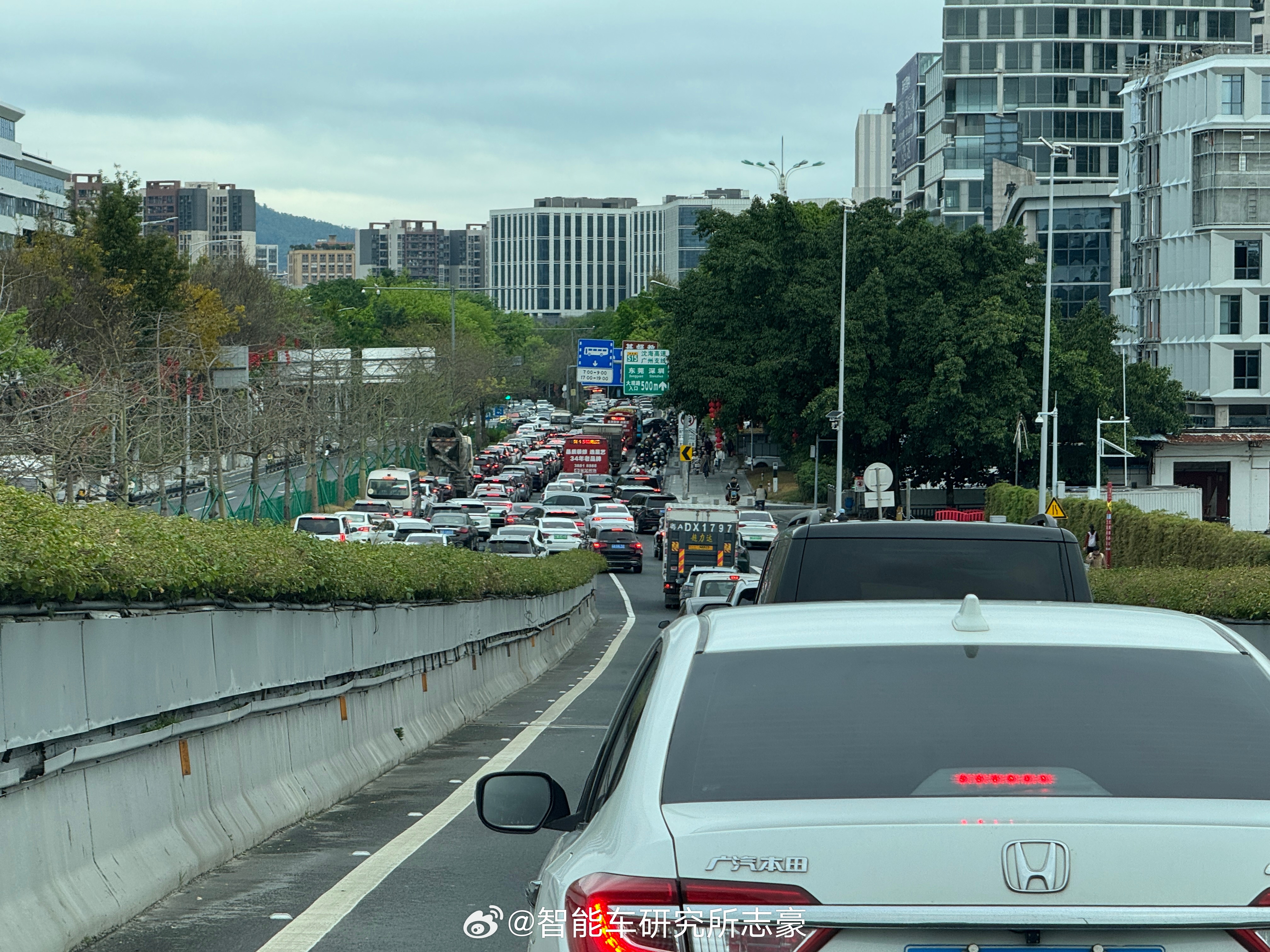 一望无际的早高峰堵车队伍