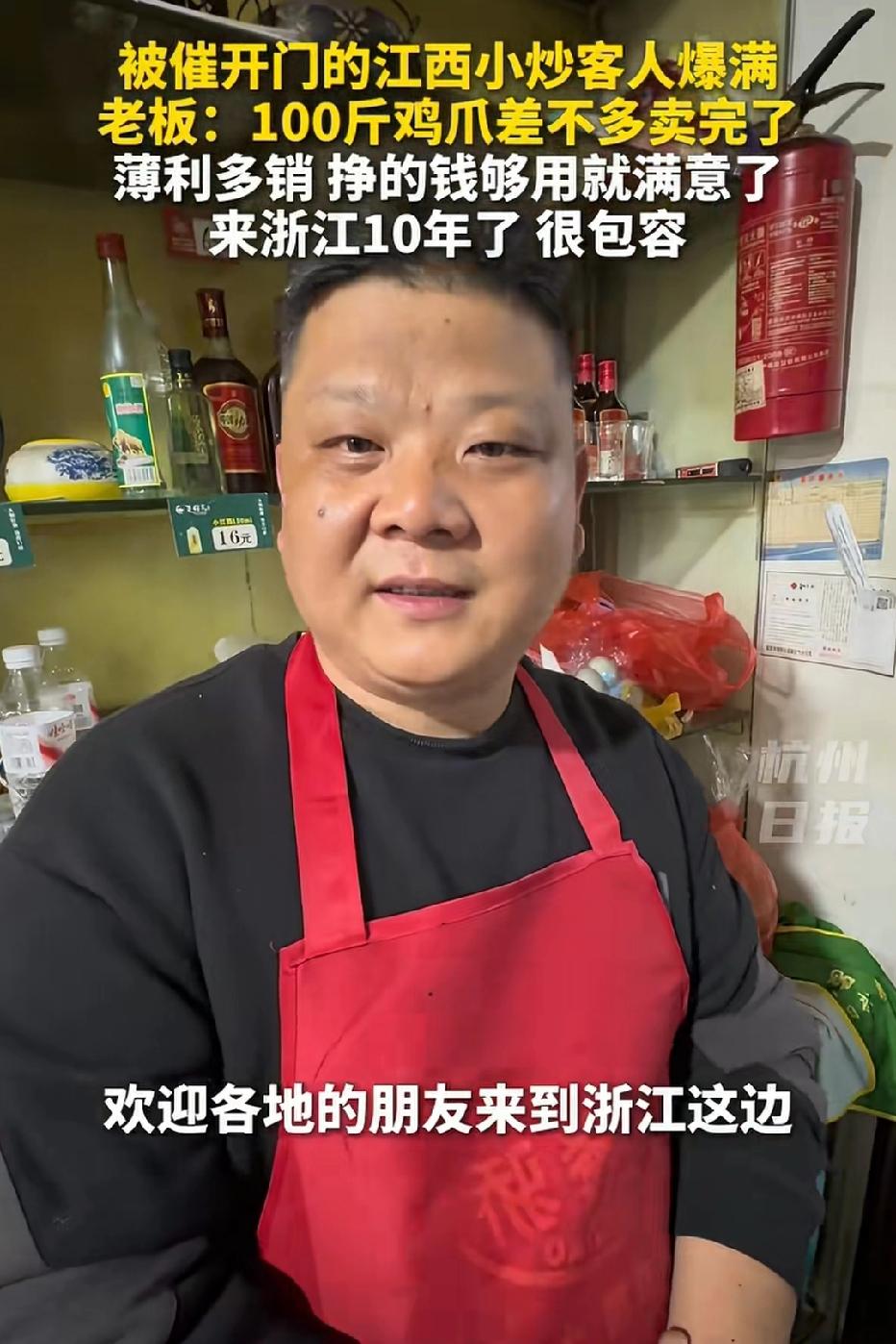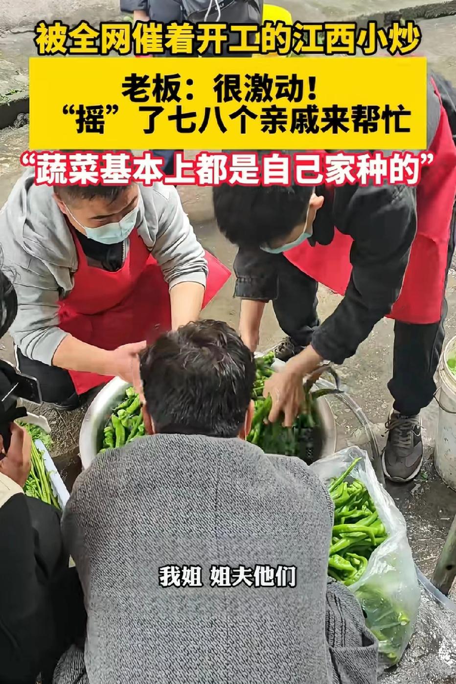 近日浙江温州,被全网催着开工的江西小炒营业了,28一份的鸡爪卖了100斤!人手不够?七大姑八大姨都喊来了! 老板对于大家催他营业的热情表示很激动,也很开心,原来有这么多网友喜欢吃他家的小炒菜!老板表示:店里一些蔬菜都是他父亲自己种的,从江西带过来的!店里比较忙,家里亲戚都过来帮忙了,洗菜,切菜,上菜,收拾桌子,每个人分工明确! 难得的是,老板在自己目前店里比较火的时候,也没有刻意去提高菜品价格,多赚一点,而是和平常一样,本着薄利多销的想法,一家人在一起,做自己喜欢的事情,赚点小钱,就很开心了!