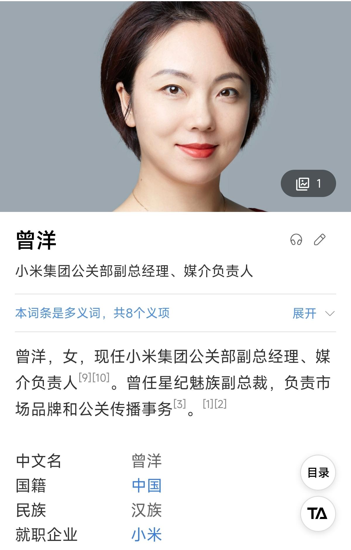 百科的这个描述是相对准确的。 前星纪魅族副总裁曾洋入职小米的职位不是媒介总监,而是小米集团公关部副总经理、媒介负责人。 公关部总经理目前由徐洁云兼任。